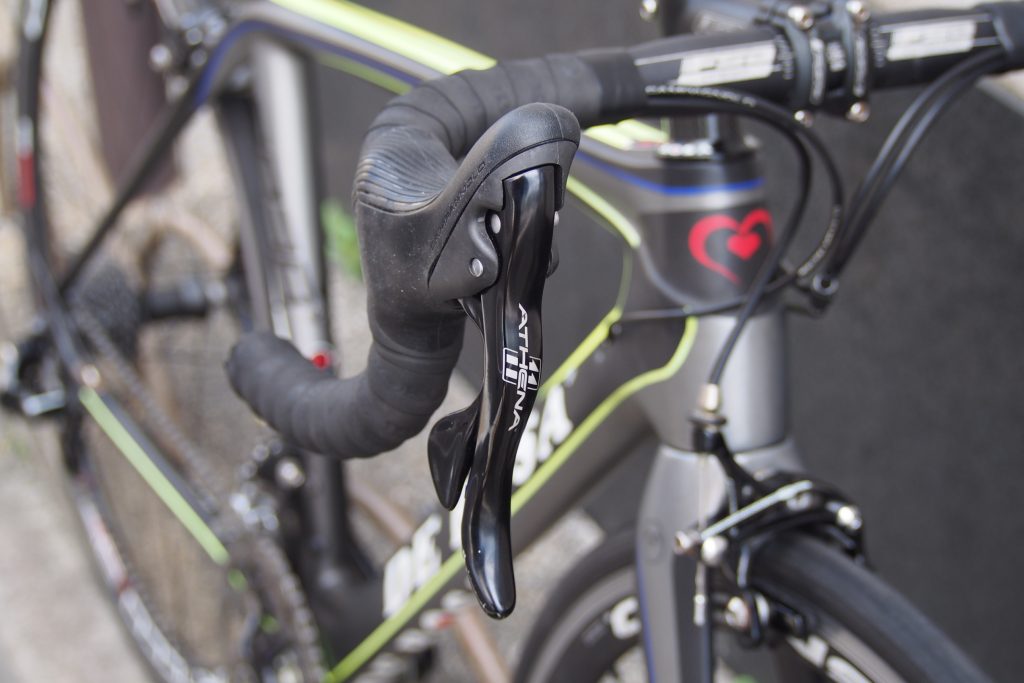 コンポーネントはcampagnolo ATHENAで統一。ブラックなのがフレームカラーとの相性も良いですね◎