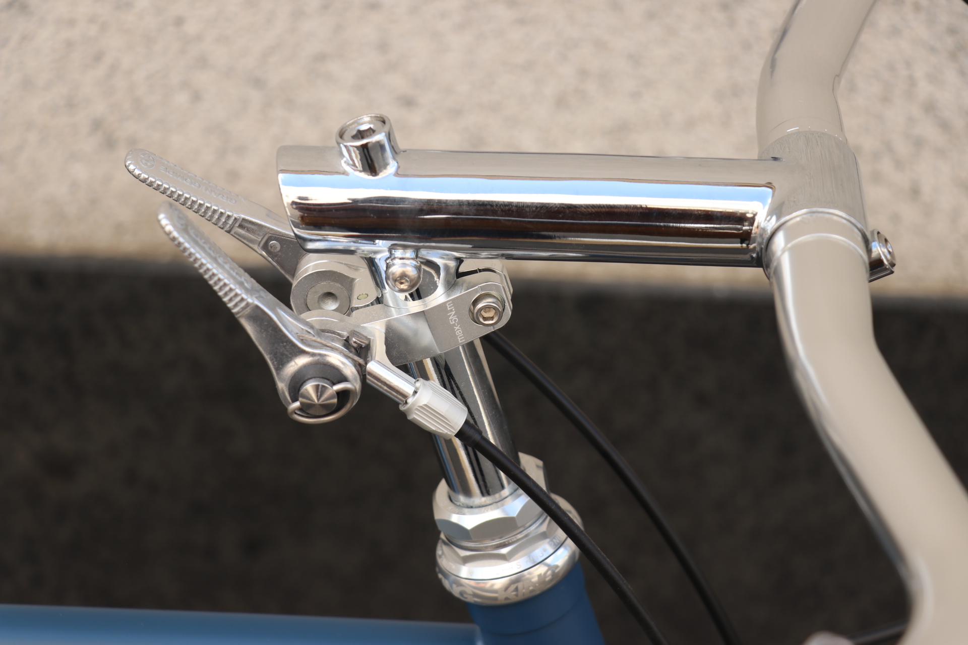 そして、そこに合わせるのがVELOORANGEのGrandCruステム。マジでカッコイイステムです、ハンドルがNITTOのダルメッキなのに対してステムはメッキシルバー合わせてるのもすごいイイバランスですね。