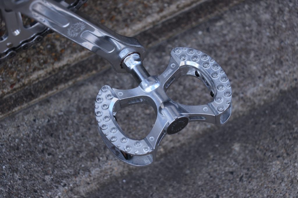 ペダルはNITTOと並ぶ国産老舗ブランドMKSからラムダをチョイス!コレも普通にシルバー・クラシックで考えると定番のシルバンを使いがちですがより街乗りに特化した不思議なフォルムは見た目にもGood!ピン付きペダルとも違うのでペラペラのサンダルなんかでも気にせず乗れるので街乗りには持ってこいです◎