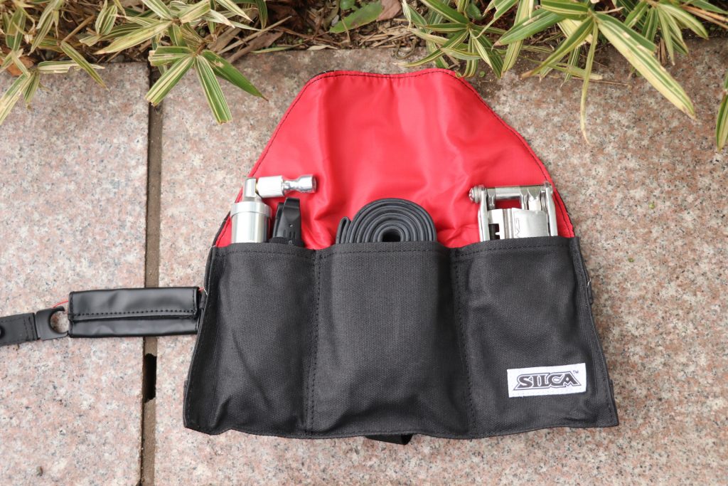 インナー部は3つのポケットが配置され、インフレーター・タイヤレバー・携帯工具・予備チューブを入れておくのにちょうどよいサイズ感。