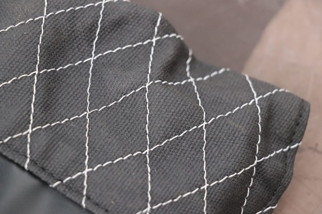 ●防水性のあるワックスキャンバスと反射糸のキルティングステッチ