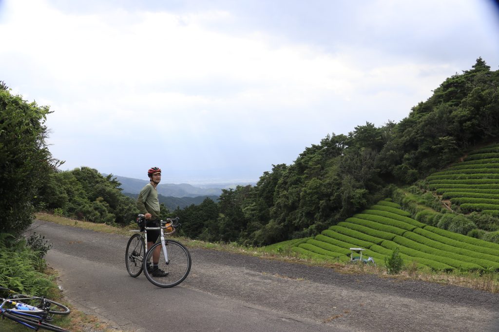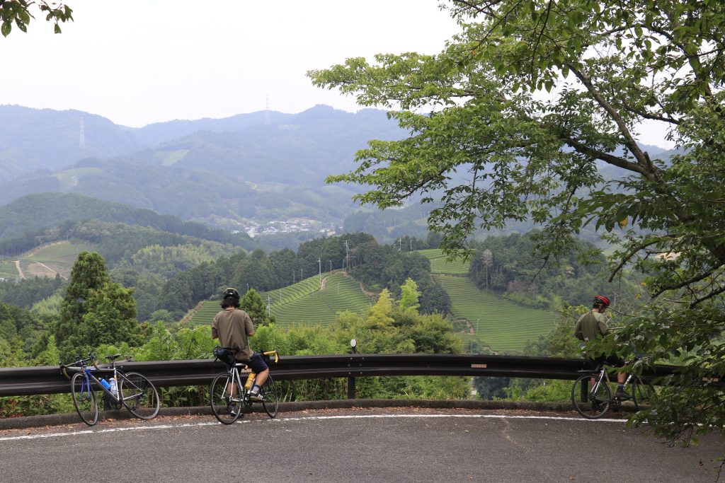 ゆっくり上り終えると和束の茶畑が望めます。目的地の中心部まで下りって休憩とします。