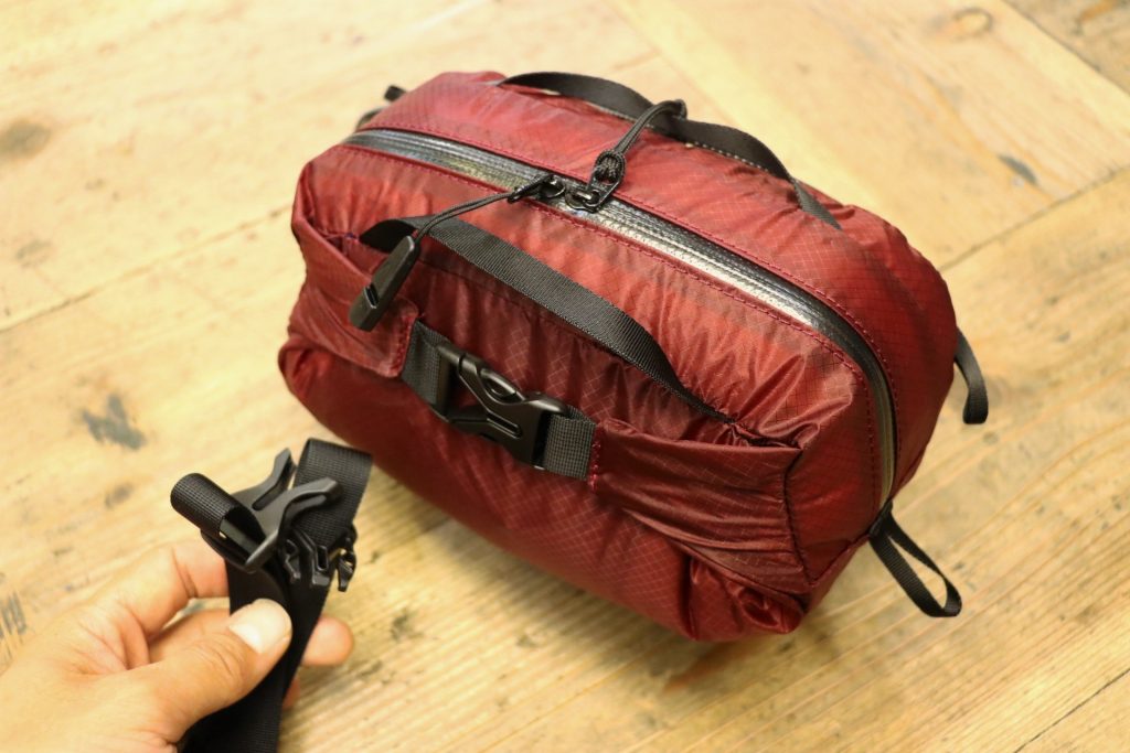 本作は昔からULギアでは定番で採用される超軽量&引き裂き強度の高いインビスタ社 CODURA silnylon 30Dをメインファブリックに使用したコンパクトなバッグ。
