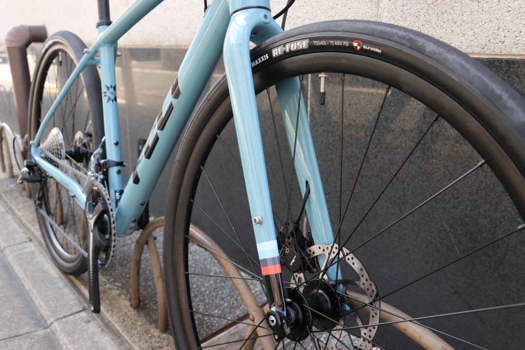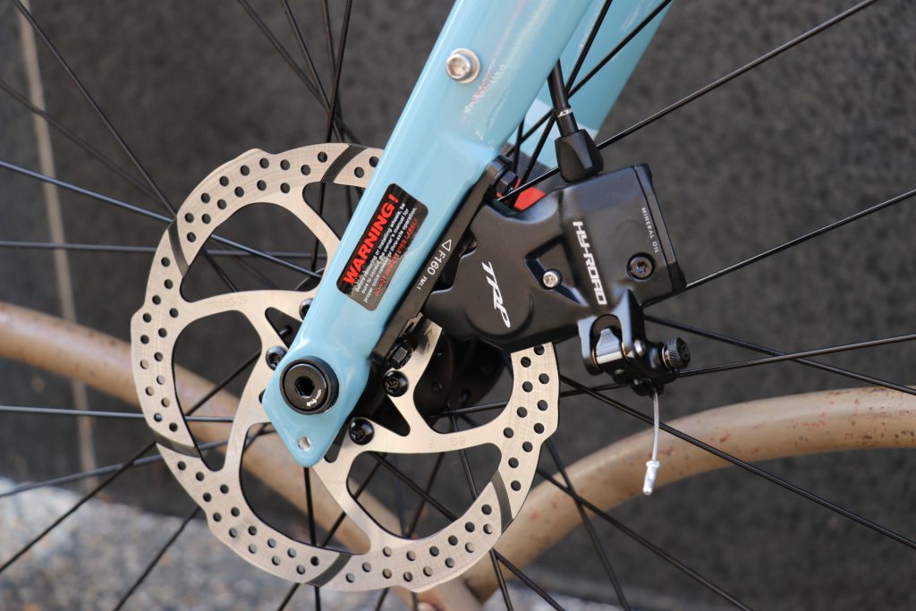 「シマノTIAGRAコンポ2x10SPEED仕様」+「機械式レバーで操作可能な名作油圧ディスクブレーキ「TRP HY/RD」油圧ディスクブレーキ採用」、「カーボンフォーク」を標準仕様、更に前12mmスルーアクスル規格を採用しながらも、なんと定価14.8万(税別)!