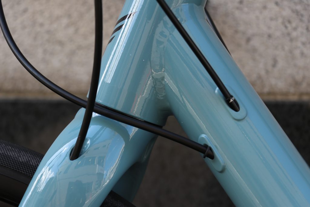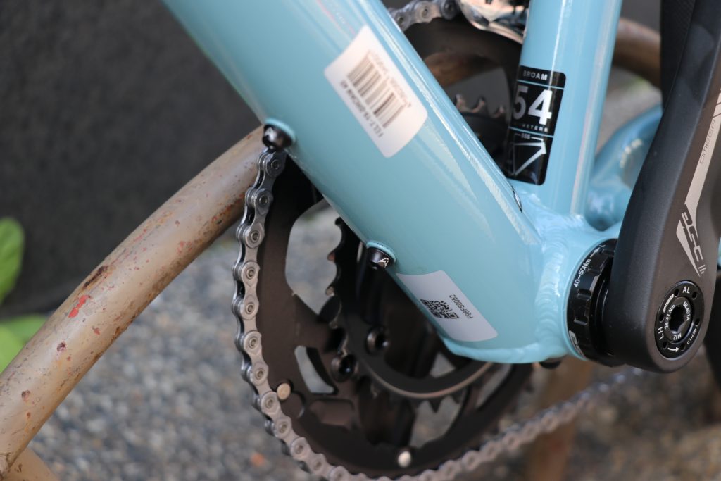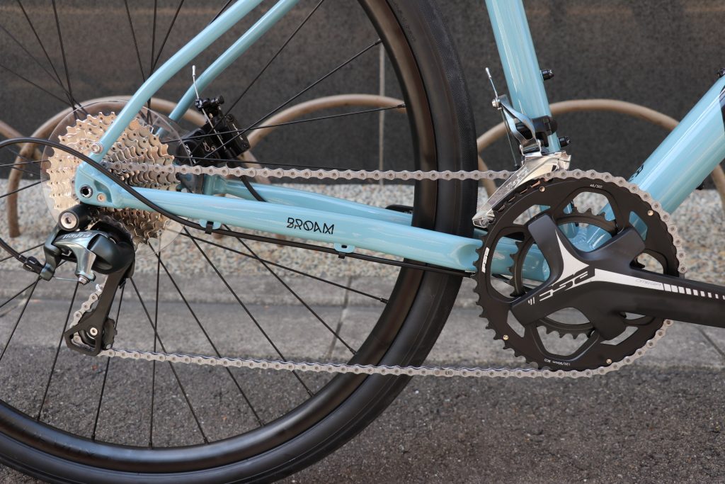 もちろん、VRシリーズや同社のクロスバイクVERZAで培ったダウンチューブからBBシェルへの溶接を下側にオフセット、BBの下からダウンチューブが支えてくれる構造はBROAMにも採用されておりペダルのパワーをしっかりと受け止めてくれるその剛性感ある軽やかな走りは、重量増が全く気にならない程。