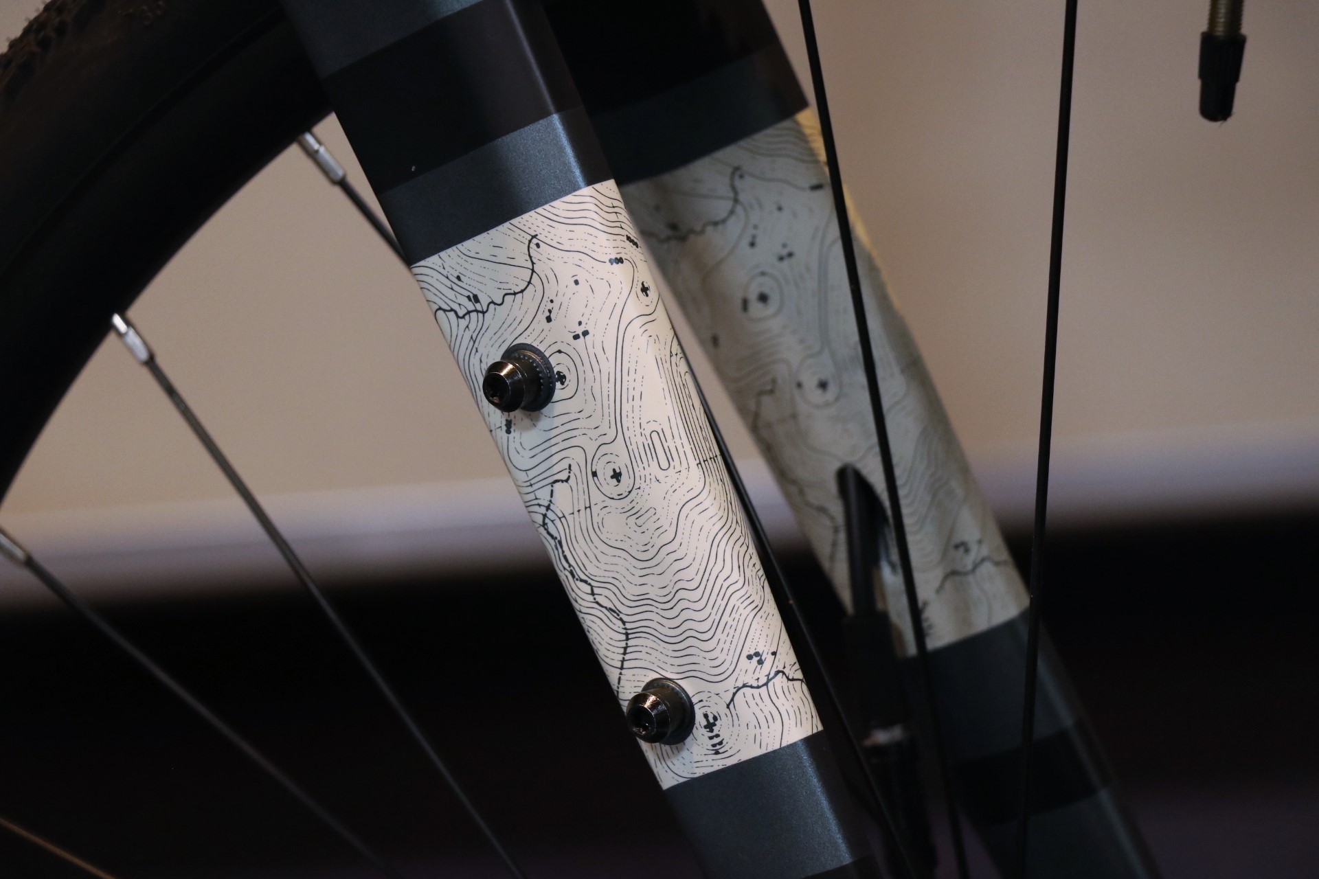 フォークブレードのボトルケージ台座位置が高めなので、実際にボトルを積んだ時に走りながら手が届きやすくなっています。