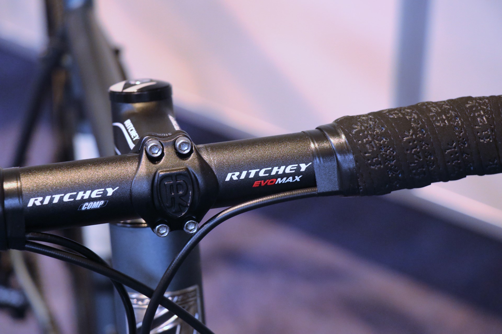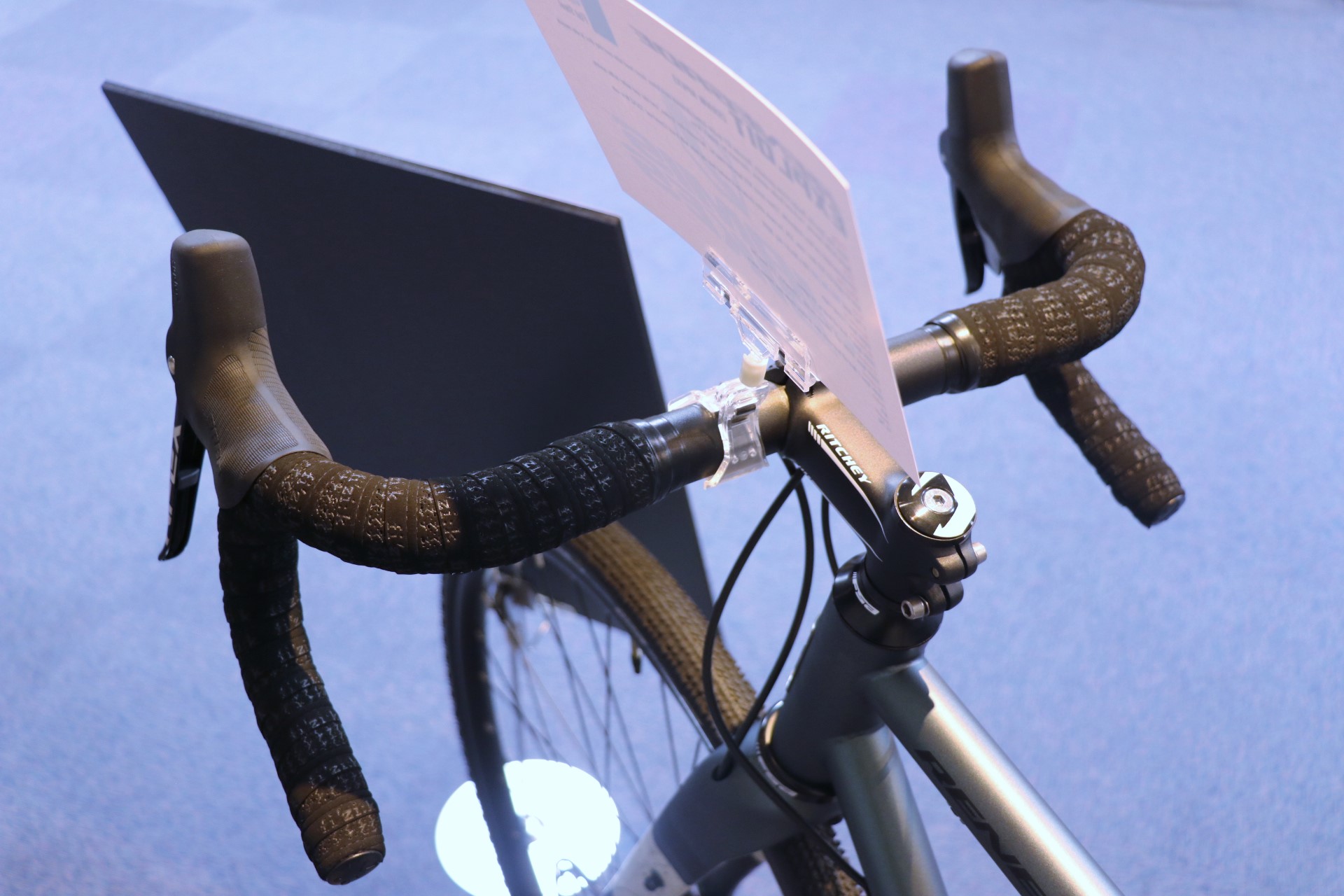 やや開いた下ハンドルに少しだけバックスイープの付いたフラット部が自然と手首に馴染みます。