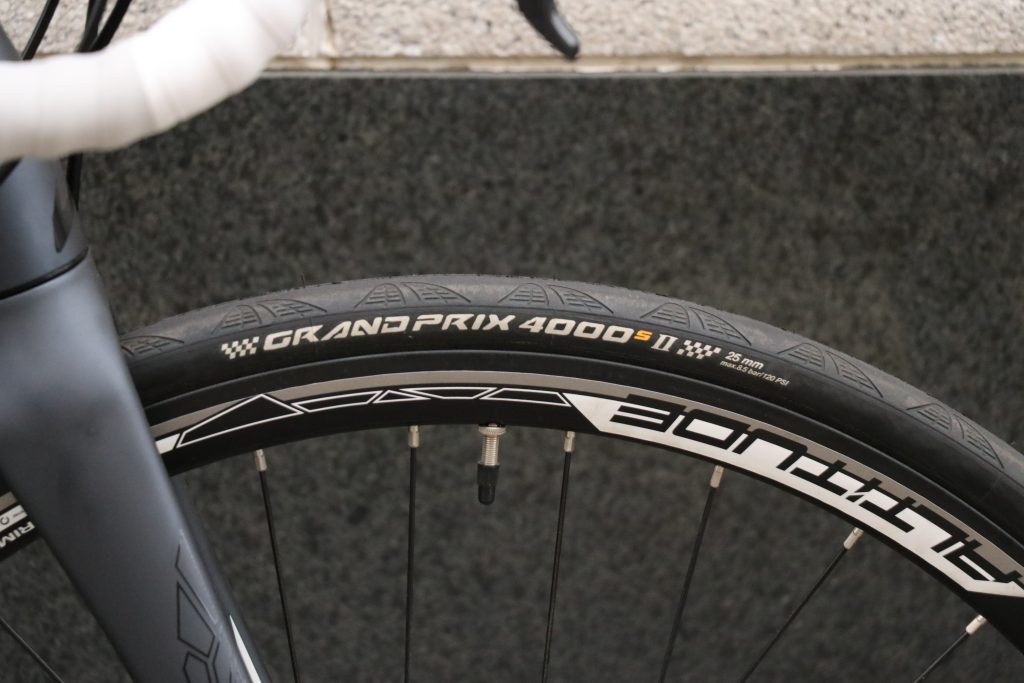 ホイールが良い構成ならタイヤもかなり良いですよ!タフで良く走る当店でもオススメのタイヤブランド『Continental』のGRAN-PRIX4000SⅡを標準装備!耐パンク・耐摩耗の機能を詰め込みながらもしなやかに走る名作です◎