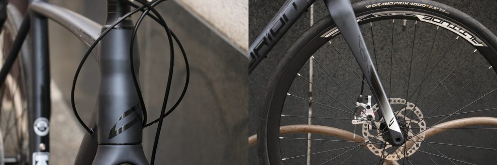 ジオメトリーを見ると加速と巡航をバランス良く用意したピュアなレーシングロード。ディスクロード=エンデュランスというイメージもありそこに寄せた物も多くありますが、コレはあくまでオールラウンドなレース直系モデルに制動力高いディスクブレーキを採用したモデルでしょう。