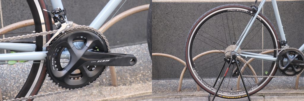今回は、2018年度より販売開始となりました「shimanoR7000系105 2×11スピードコンポ」をメインに、カンパニョーロZONDAホイール、ヘッドパーツにはクリスキングをアッセンブルさせて頂きました。この完成車仕様で約35万(税別)となっております。