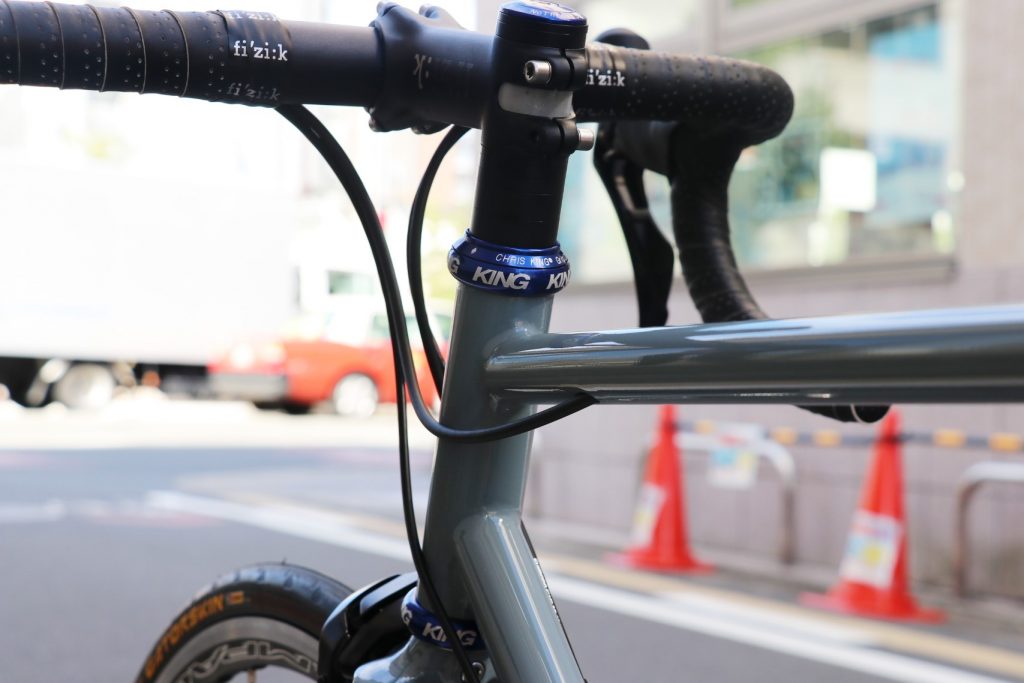 ヘッドチューブをトップチューブの溶接位置より少し上に長く延長し、ハンドル位置をあげてもヘッドスペーサーをたくさん使わなくても良いという配慮。このあたりの仕様・工作はやはりオーダーメイドフレームならでは。