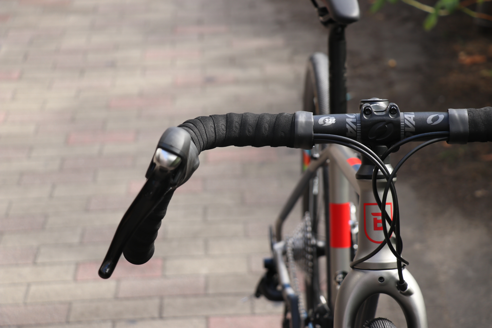 ハンドルは下ハンが広がったグラベル系ドロップハンドル。