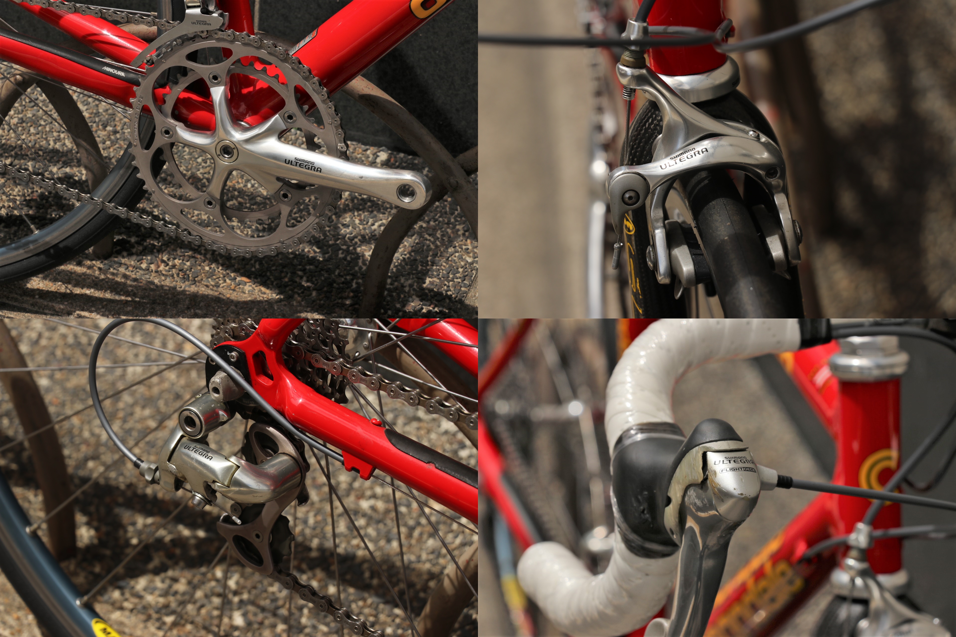 パーツは6500ULTEGRAを使用した2X9Speed。シルバーカラーがキレイだった頃のSHIMANOパーツは今でもファンが多くそれだけ完成度が高いという証拠でもありましょう。