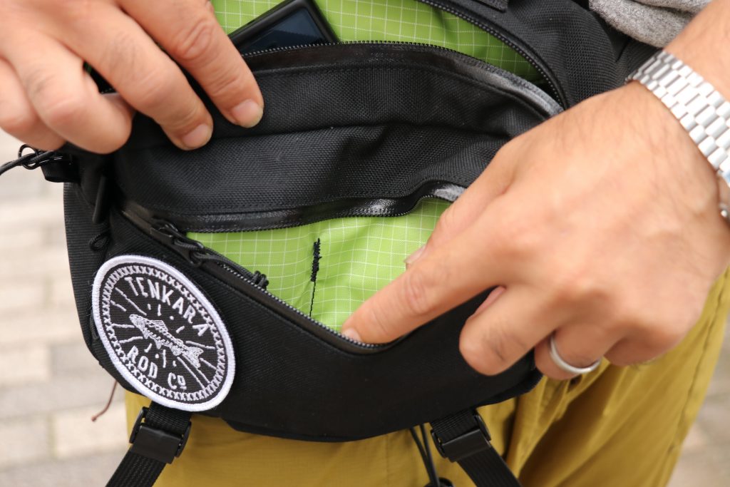 メインのコンパートメントはジッパーオープン。内部に3つのポケットがあるので荷物の整理も楽々、容量的にも携帯・財布の貴重品にメンテグッズと必要な物は大体入りそうな良いサイズ感。