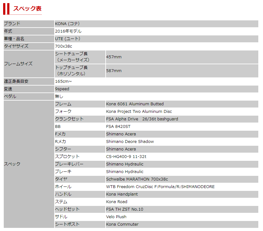 【中古自転車情報】コスパ最強のロングテールが中古車になって更にお買い得に!!【2016年モデル】KONA (コナ) UTE (ユート)