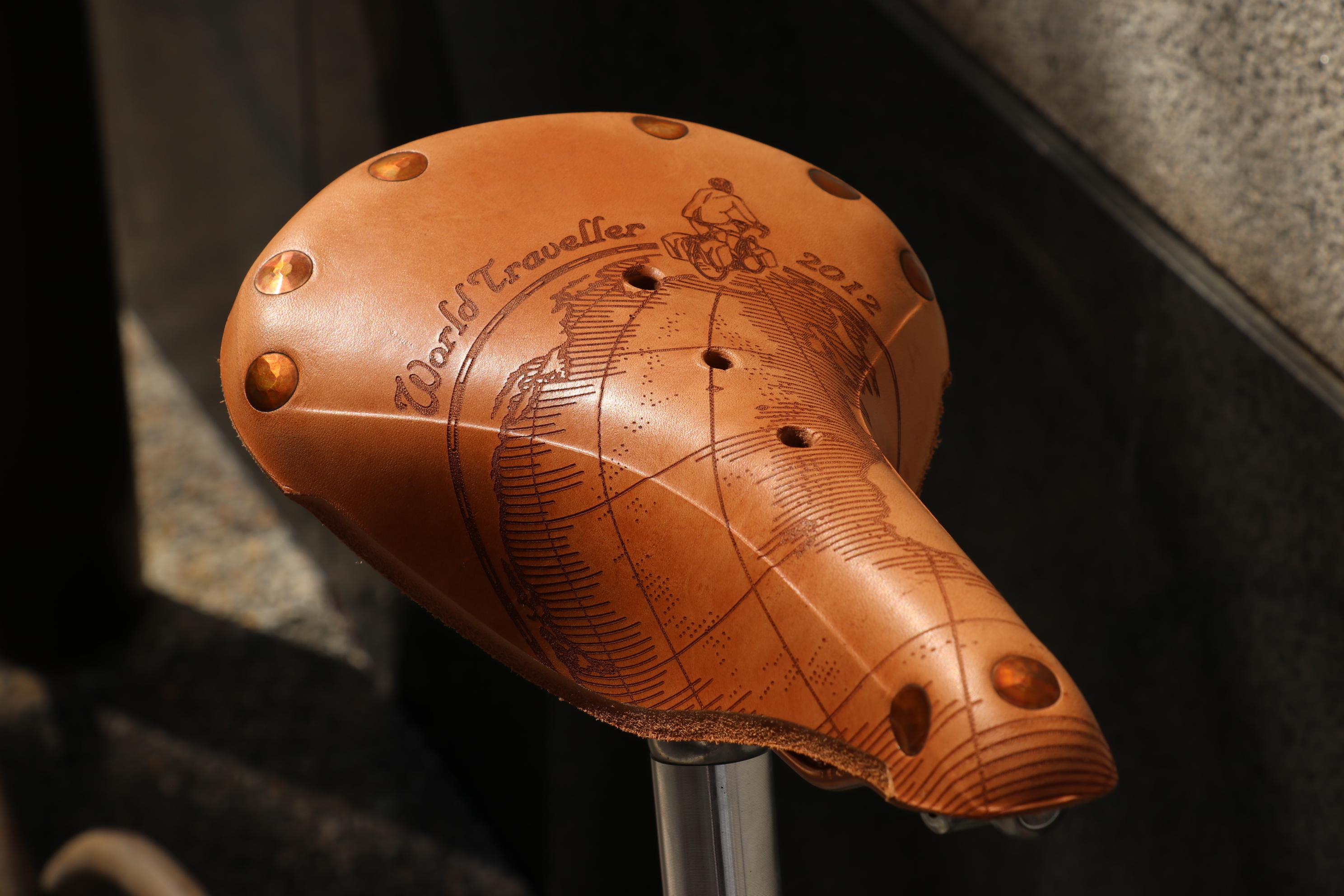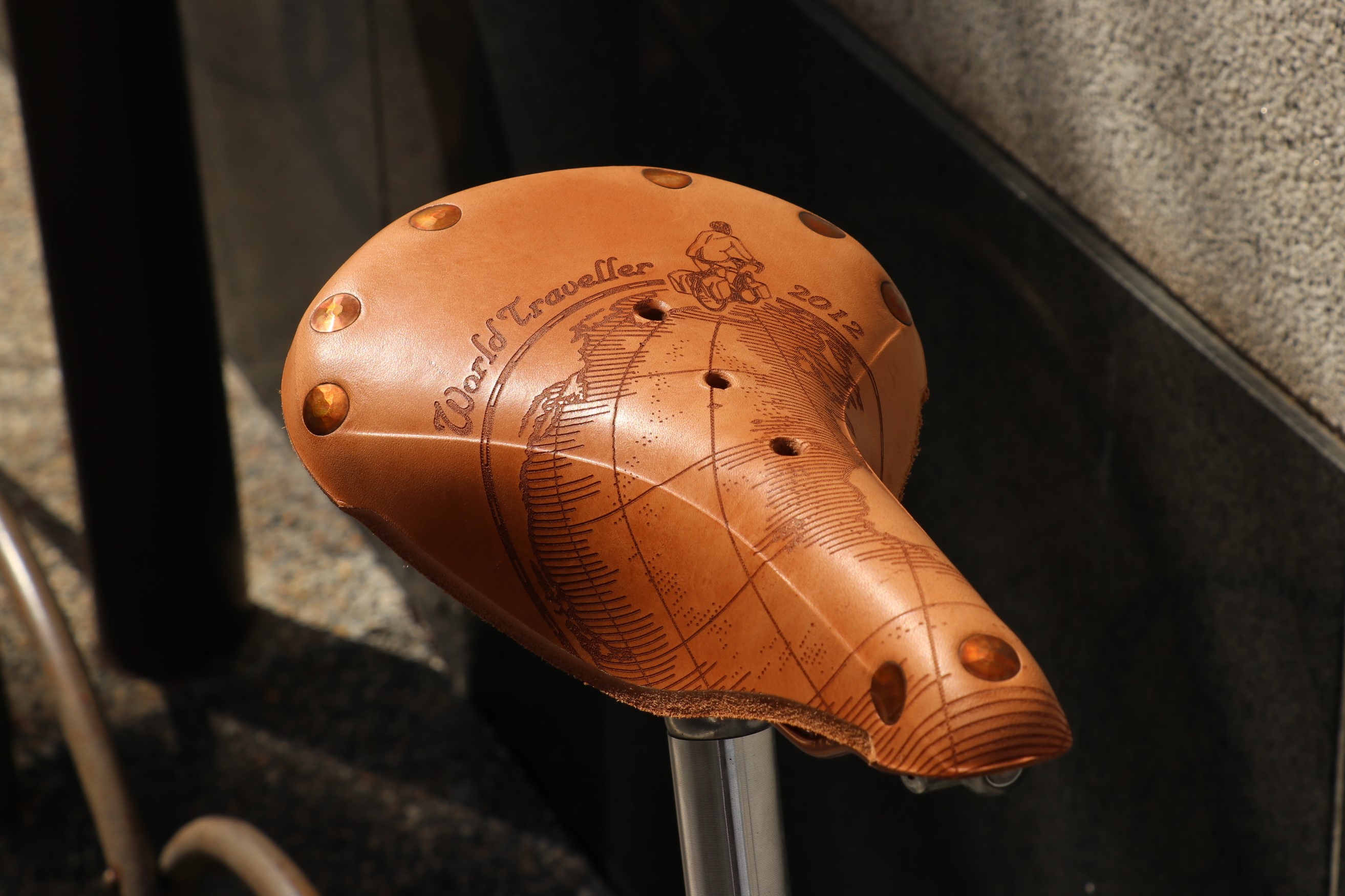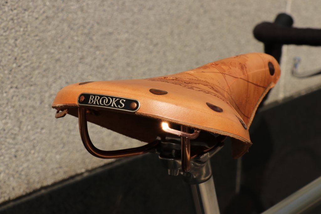 今回紹介するWORLD TRAVELER MODEL(ワールドトラベラーモデル)は、純正でBROOKSのレザーサドル、 B17 SELECT WORLD TRAVELLER 定価¥26.000-(税別)が標準採用。