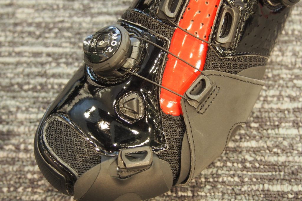 足首とつま先の2ダイヤル。つま先側にはフックが複数用意されているので、ワイヤーの掛替で好みのフィット感に微調整可能です。