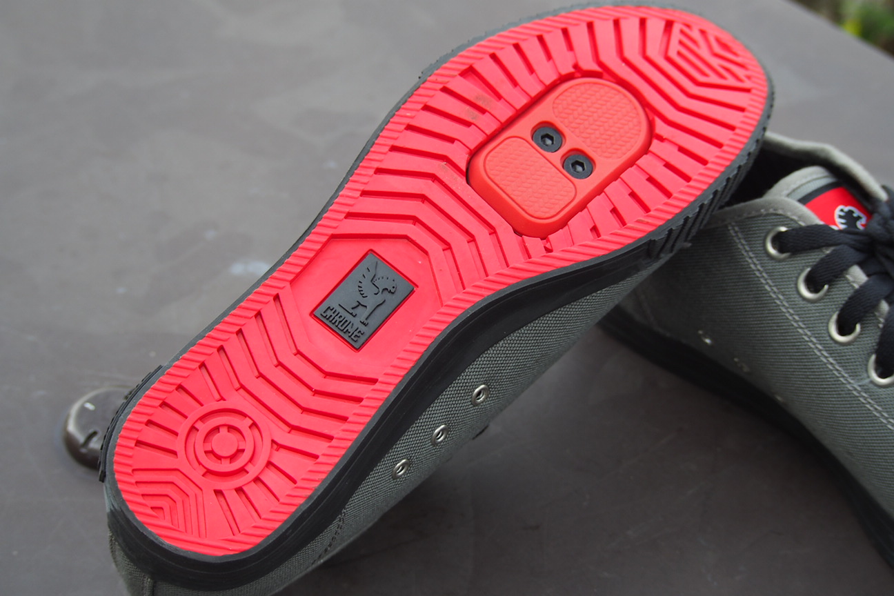 真ん中の硬質プレートがペダリングの力を逃がさないので、見た目とは裏腹に良く進むビンディングシューズ。
