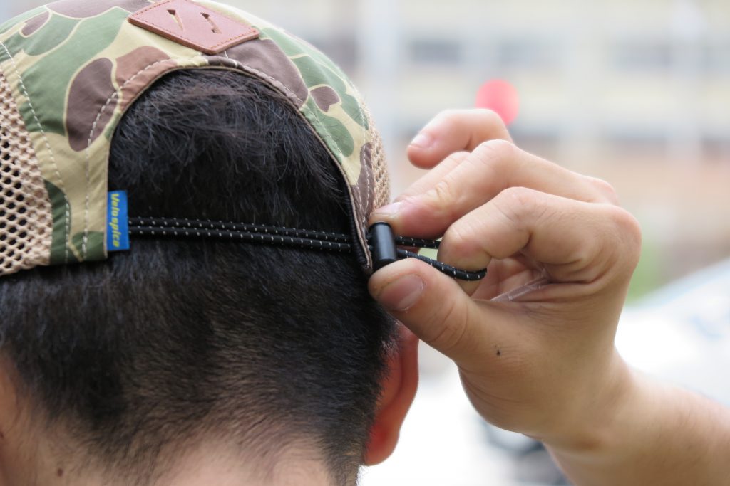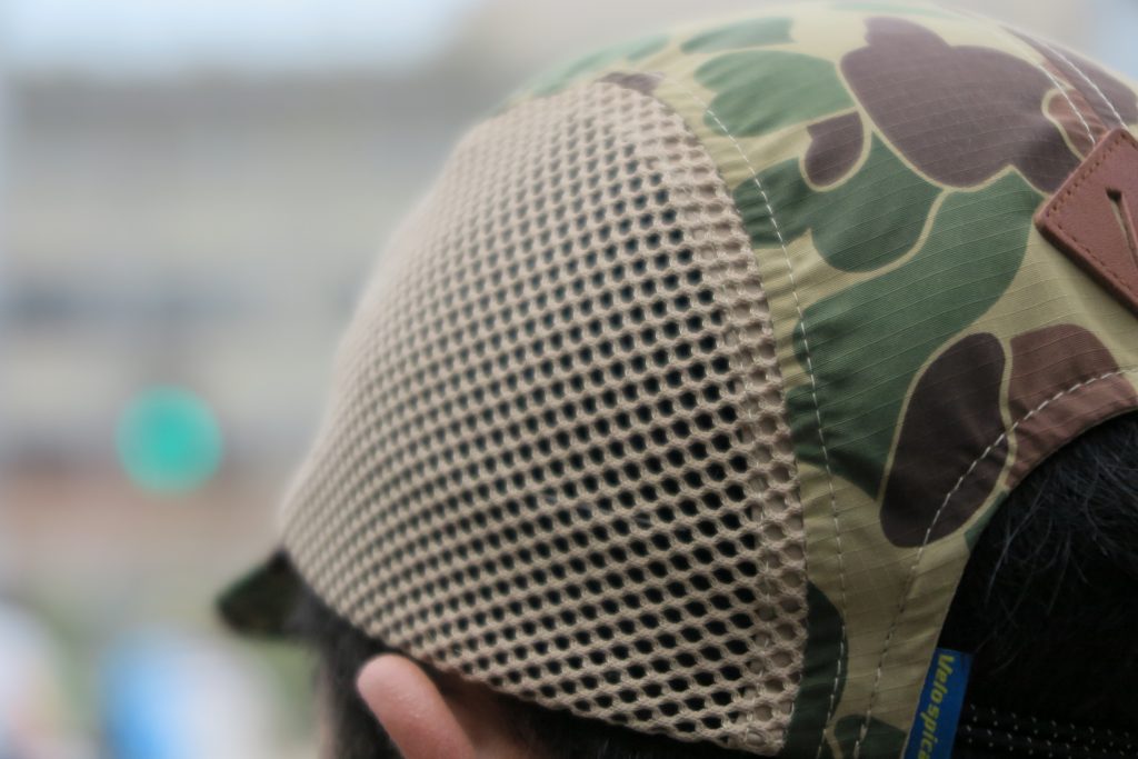 古き良きアウトドアギアへのオマージュを感じます、後頭部に配された”ブタ鼻”。特段使い道はないかと思いますが笑、このキャップの佇まいにおいては重要なアイキャッチ。ホールの形状がブランドの頭文字VSに。