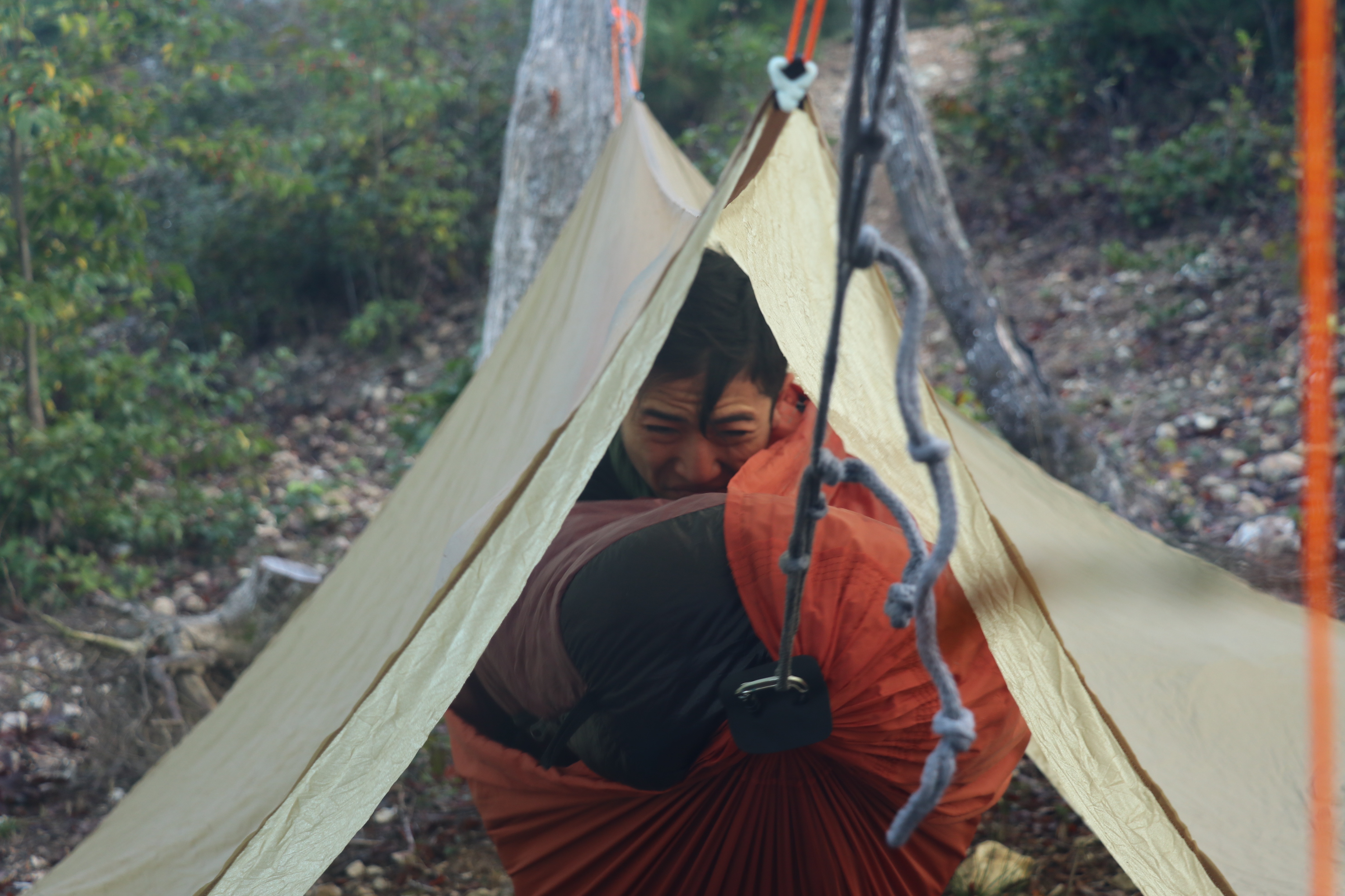 世界最軽量クラスのHummingbird Hammocksのハンモック&タープで寝床はビシっと決まっておりますが~