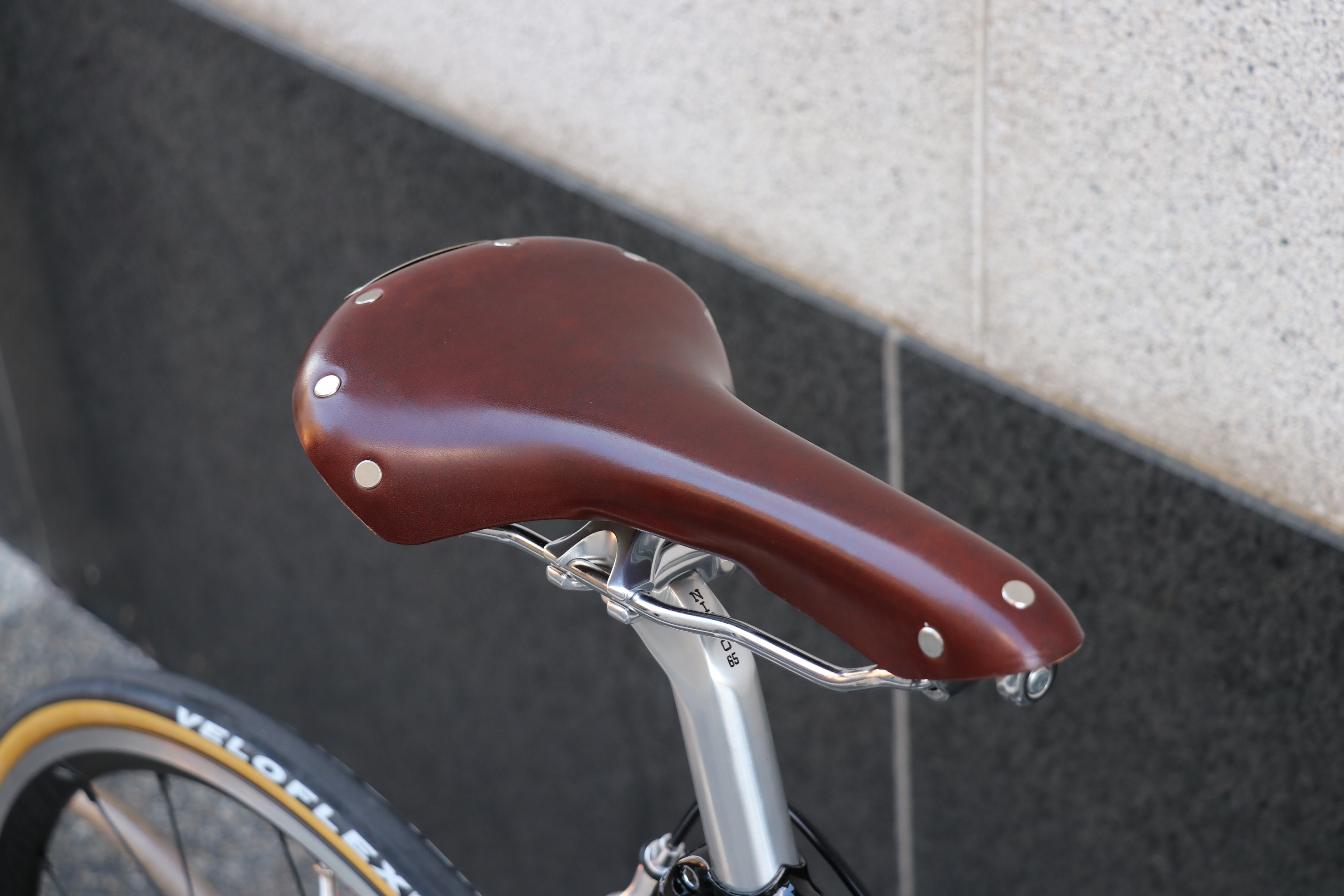 サイドを大胆にカットしたフォルムが実にロードレーシングなサドルですが、バッグループが付いているのは流石のBrooks.