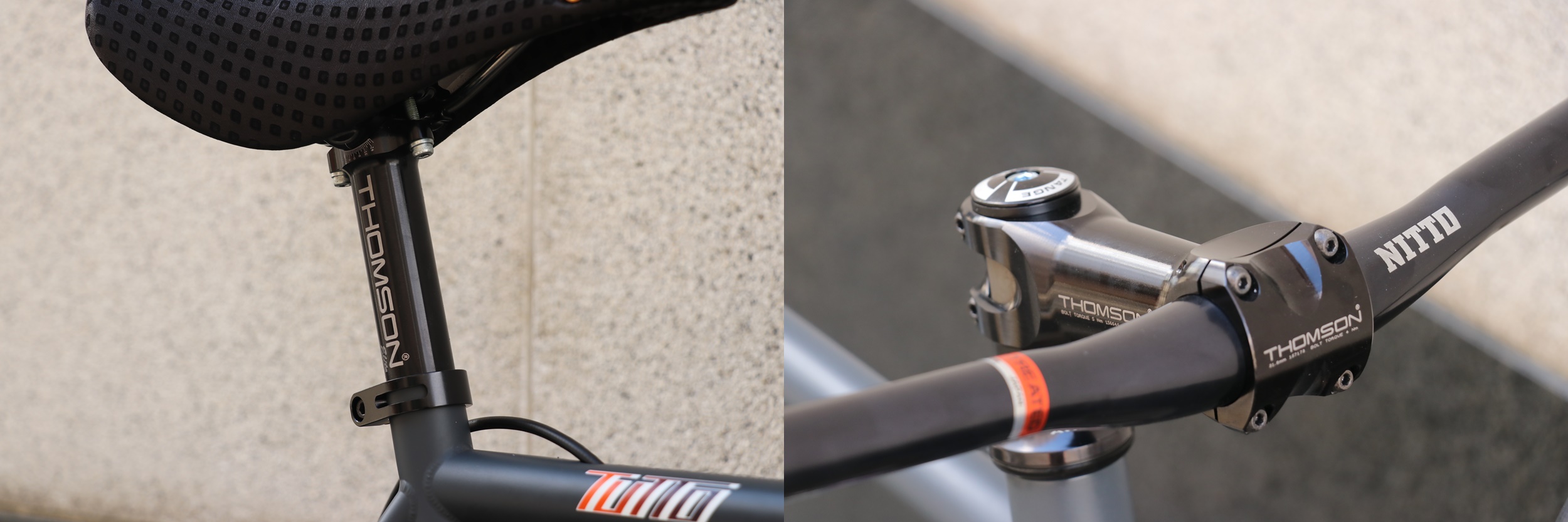 シートピラー、ステム。価格を抑えようと思えばできますが、このあたりも一切妥協なくUSAブランド「THOMSON」でコーディネイト。