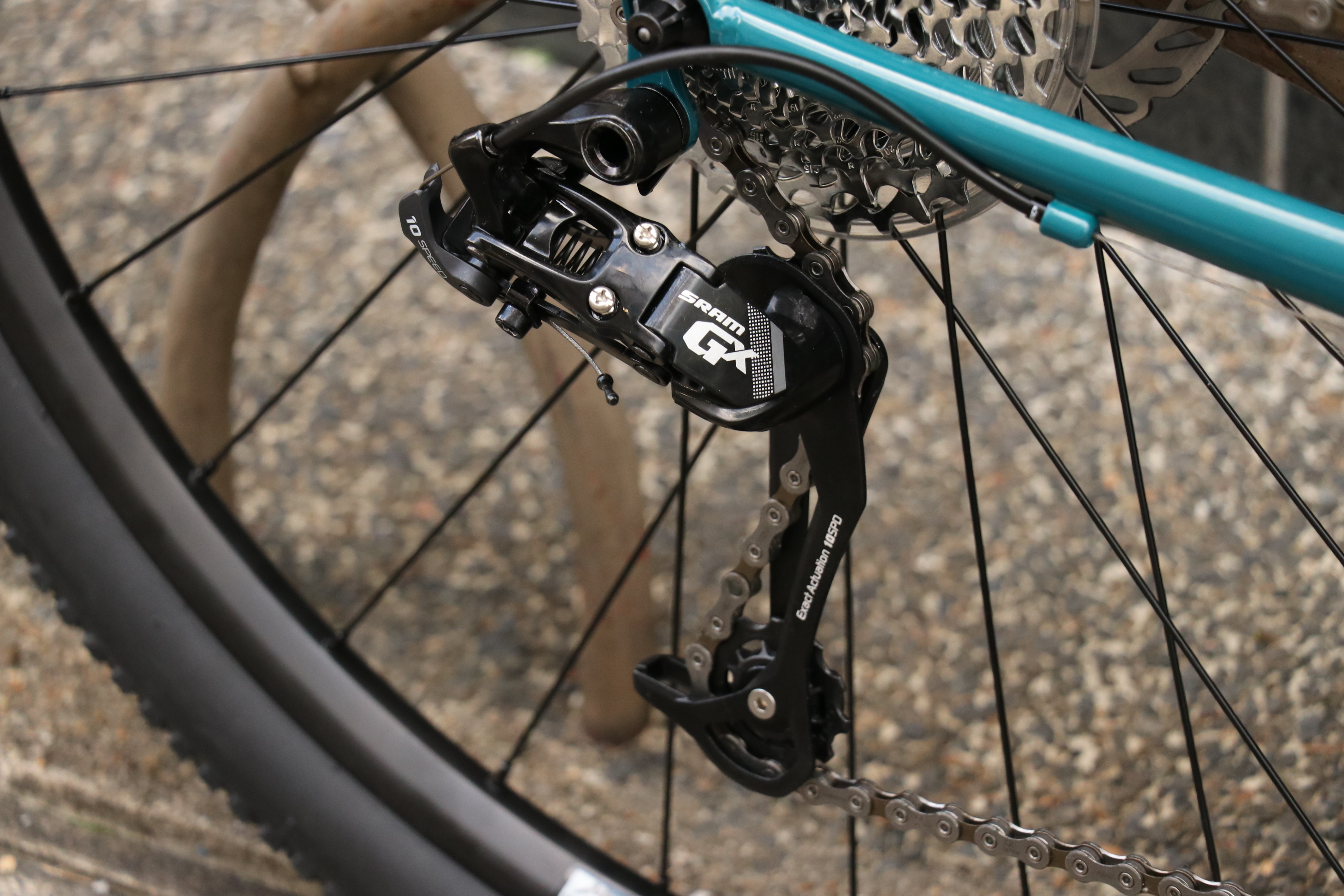 SRAMのディレイラーはshimanoよりもアームのスプリングが強く、ダートライドでもチェーンが暴れる事が少なく、チェーン外れトラブル防止に寄与しております。