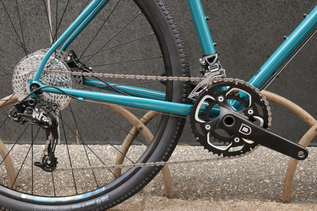 リアスプロケットの11-36Tと合わせてギア比1を下回る格段に軽いギアが踏めるので、きつい傾斜、林道や旧道、荷物を積んだ際の登り坂も何のそのですね。