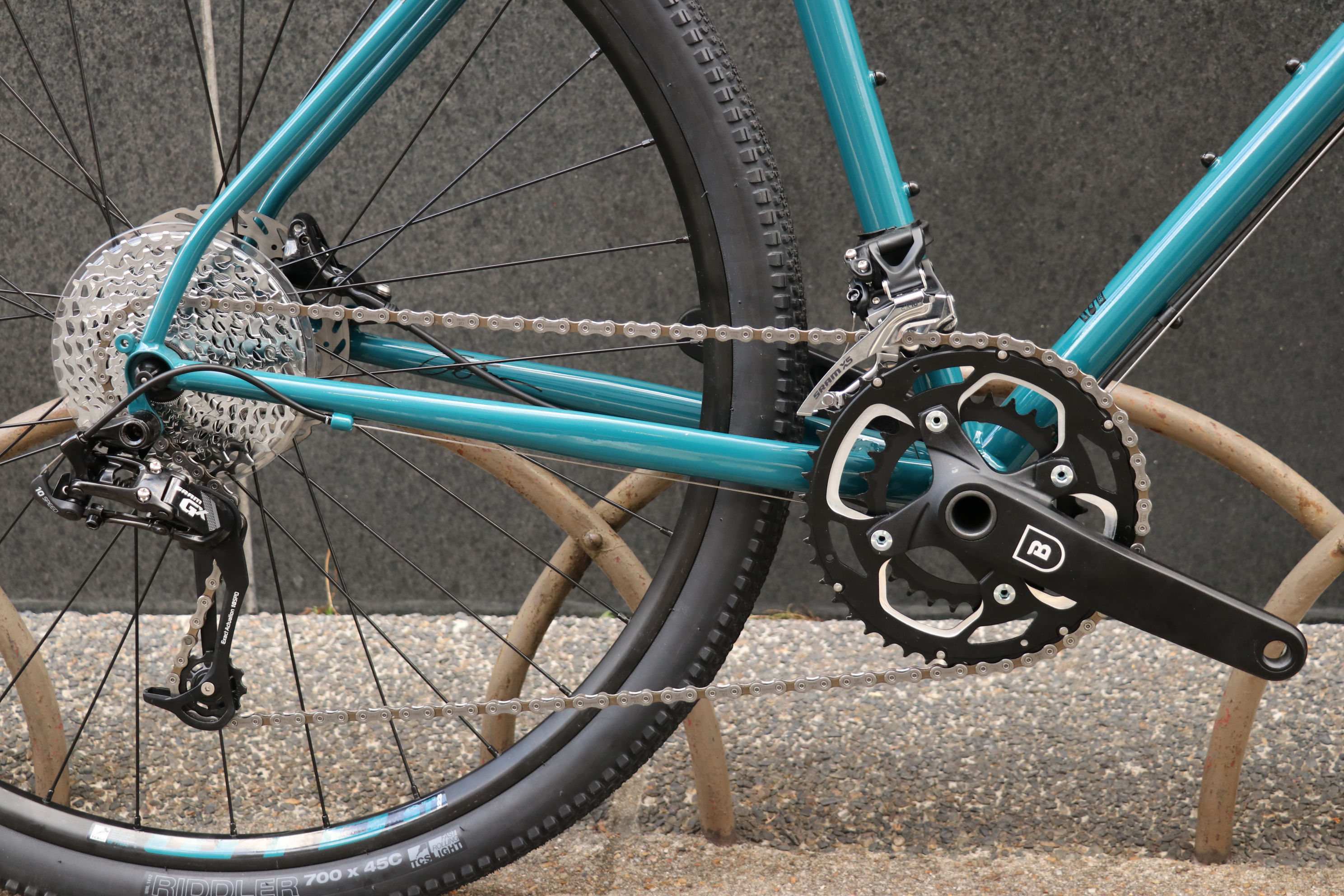 ●ダートのきつい登りも安心な46×30Tのマイクロコンパクトクランク(リア11-36T)