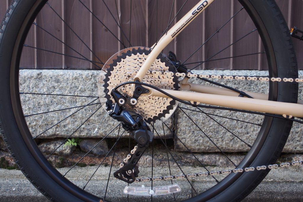 また変速枚数の少なさを補うのはリアスプロケット11-42TとMTBコンポを採用しております。
