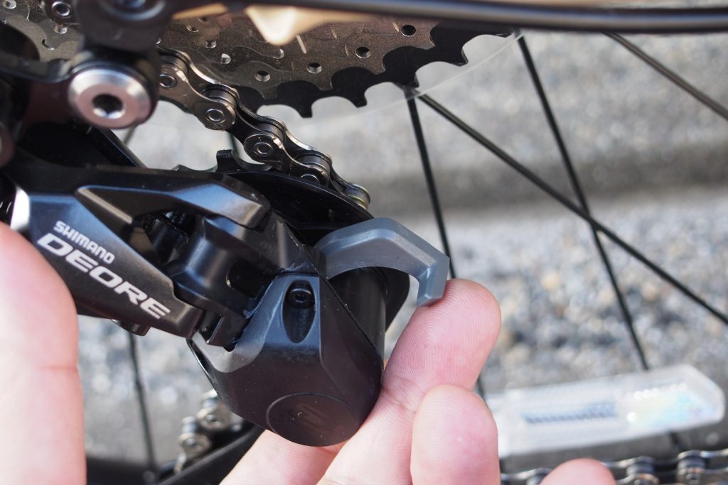 またリアディレーラーDEOREにはスタビライザーが搭載。ONにすればゲージが動かなくなりますので、更にチェーンが暴れにくくなります。