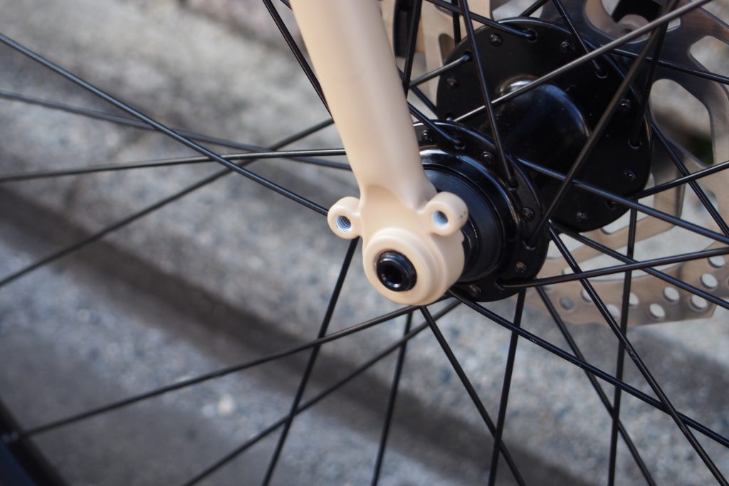 スルーアクスル規格は車輪脱着時にも常にホイール位置が定位置に設定されますので、輪行もしやすくあります。