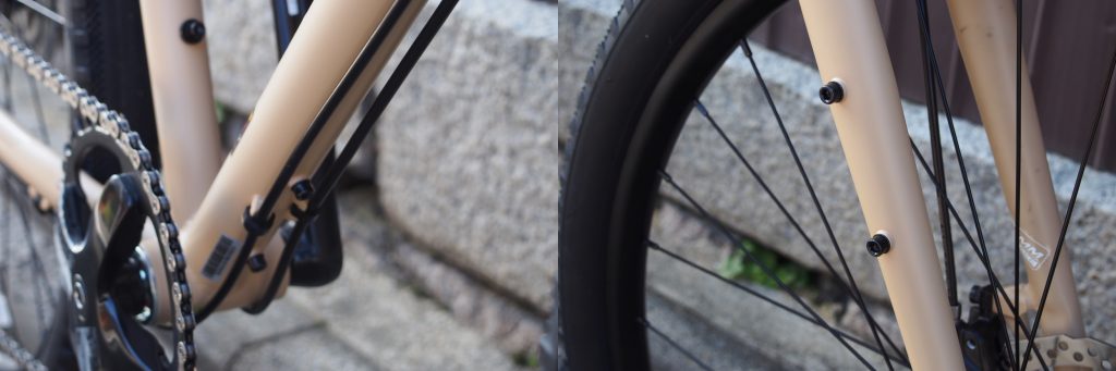 ・・バイクパッキングやキャリア、アドベンチャーバイクから踏襲される多くのアイレット(ダボ穴)・・