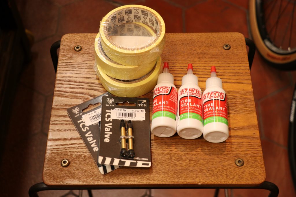 チューブレスタイヤの導入にはタイヤ以外にも専用のバルブ・リムテープ・シーラントとパーツが入用ですし、作業にはフロアポンプで無くコンプレッサーが必要なので気になるけどという方は是非一度スタッフまでご相談ください!