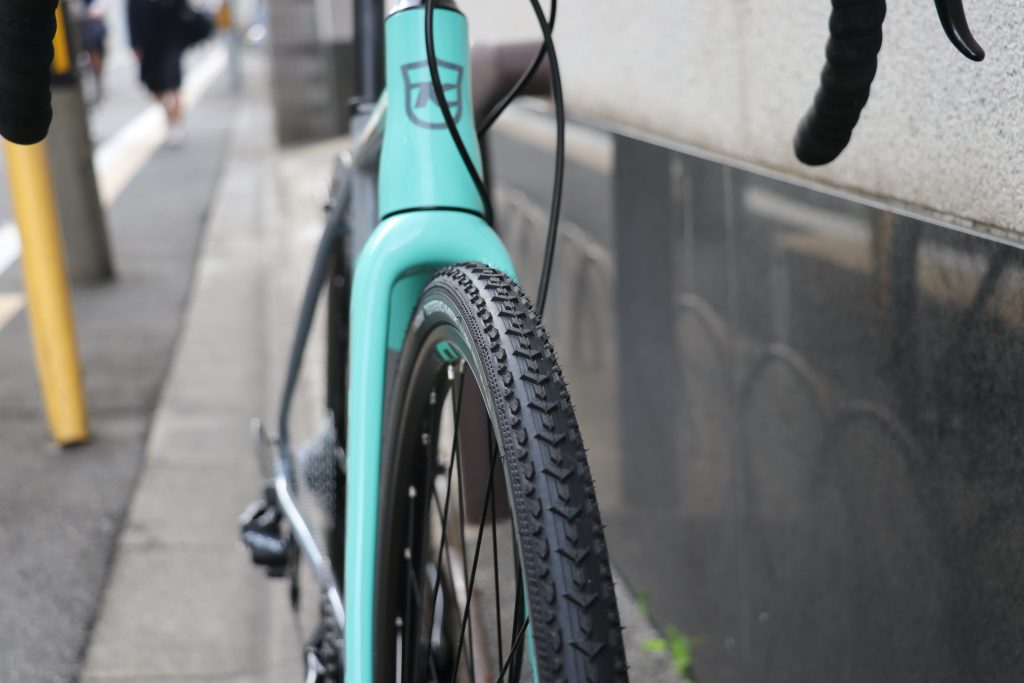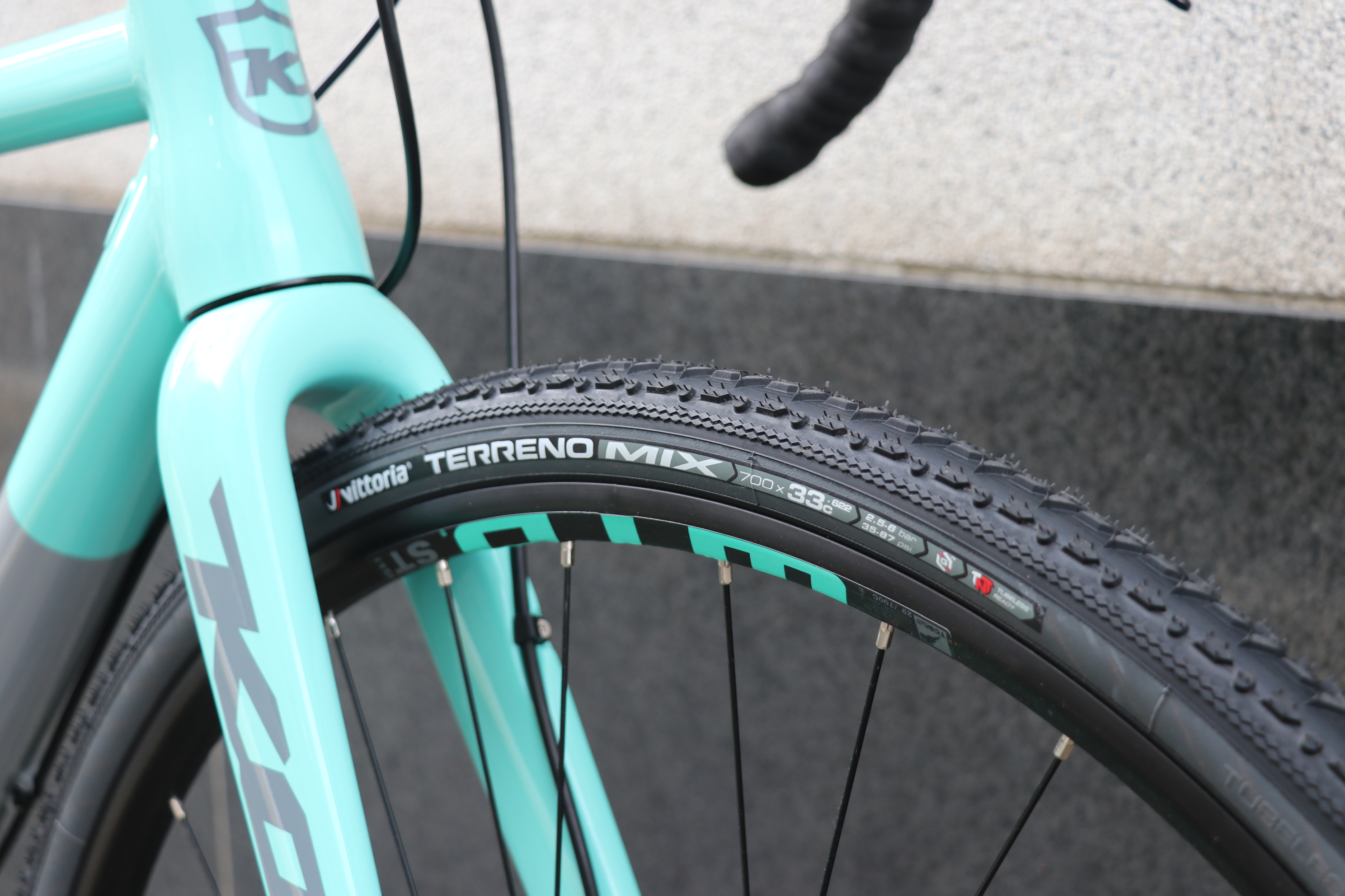 タイヤはちょっと珍しいVittoriaのTerrenoMIX。完成車採用はあまり見ないタイヤですが、タイヤ性能はかなりGood!