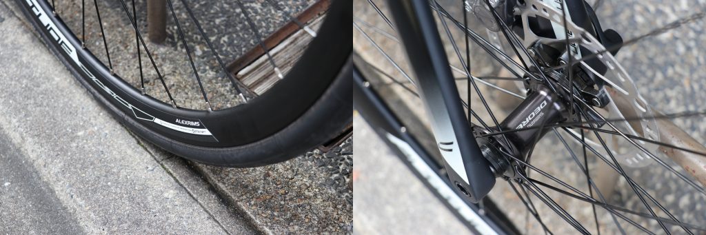 ホイールはオリジナルの組立品となりますがリムはALEXRIMS、ハブは安心のSHIMANO製、フロントはDEOREグレード・リアは105グレードと耐久に関しては確実に信頼がおけますよ◎
