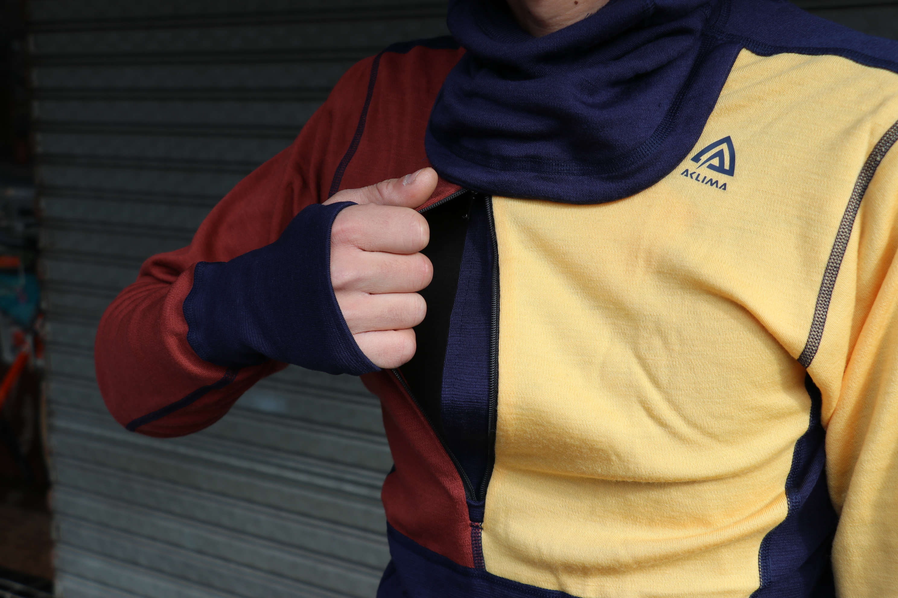前回ご案内させていただいた商品達と同じくコチラもWARMWOOLモデル。中厚手の本モデルは200g/m²の繊維密度という事で寒冷地ではベースレイヤーになりますが、自転車のような運動強度の高い(要は激しい動きで体温の上がりやすい)アクティビティではミッドレイヤー=サイクルジャージのような使い方が出来る丁度良いアイテム。