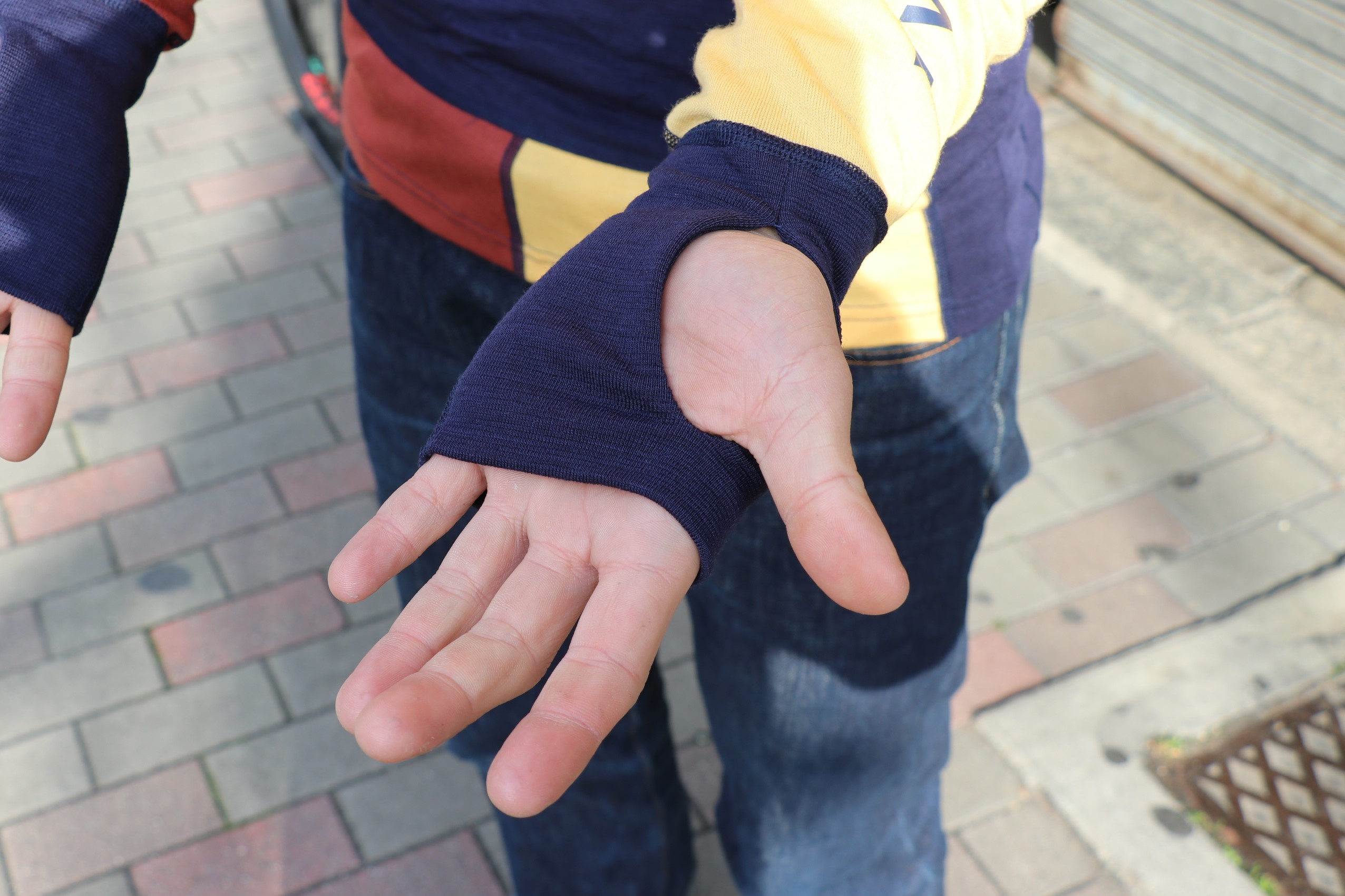 HOODSWEATERと同様に長めの袖はサムホール付きで冷気をバッチリシャットアウト!