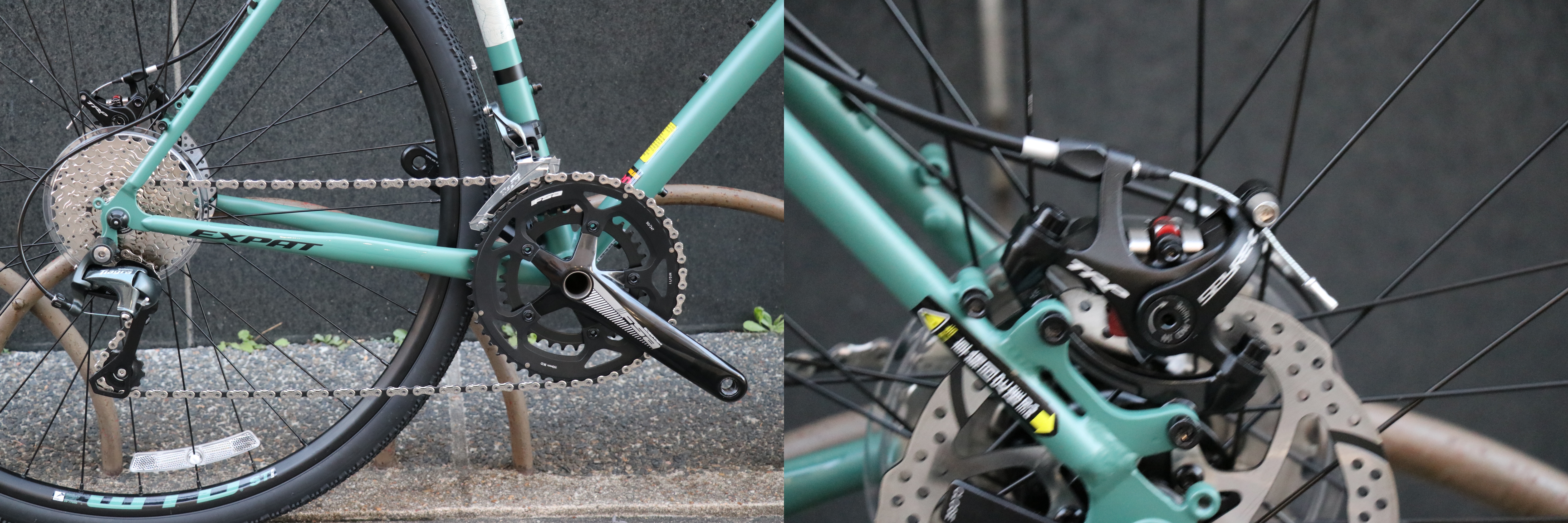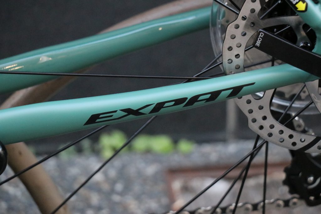 レイノルズ製スチールフレームをベースとし 高い剛性と軽量性を誇るテーパーヘッド規格採用フルカーボンフォークのアッセンブル(12mmスルーアクスル採用)、&シマノTIAGRA2x10SPEEDコンポとなると、他ブランドでの代替品が中々ないEXPAT/エクスパット。