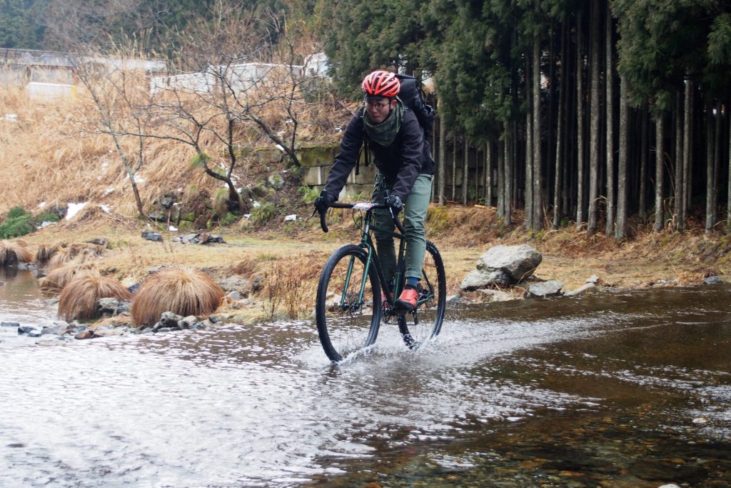 道を横切る川を渡ったりとアドベンチャーなサイクリング◎