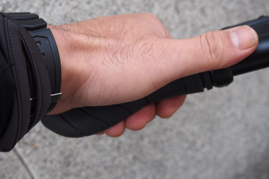 しゃもじのような形をしたエルゴノミックグリップは、掌にしっかり馴染みやすく、ハンドルをしっかり握れます。