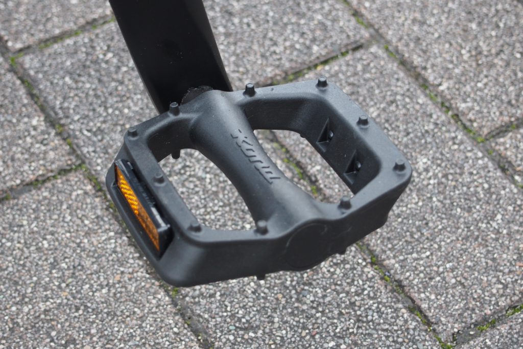 通常のクロスバイクよりやや大きめのペダル。広い踏み面は乗車時の安心感が増しますね◎