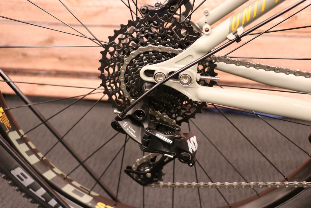 ユニットエックスはリア11段変速が標準ですが、弟分のユニットのようにシングルスピードへのカスタムもスムーズに行えます。