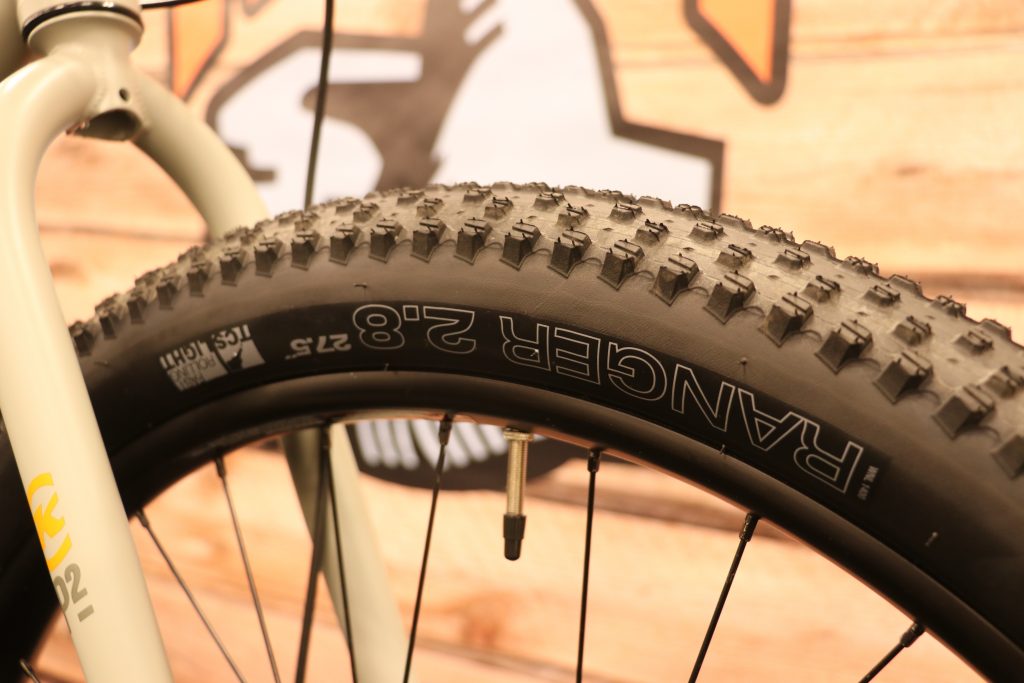 通常のマウンテンバイクよりも更に太い2.8インチ幅による多くのエアボリュームから 更に高い走破性を持つ“27.5プラス規格タイヤ”を採用し、サスペンションなくとも大幅に乗り心地/グリップ力を高めております。