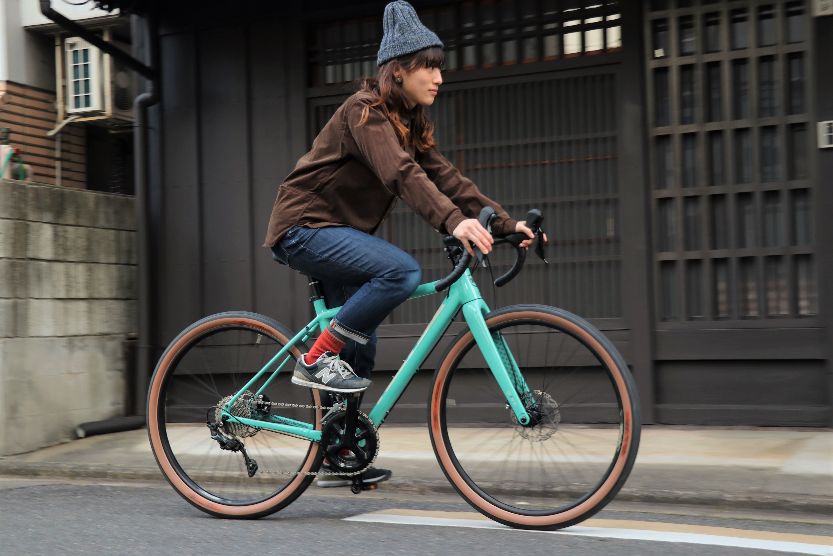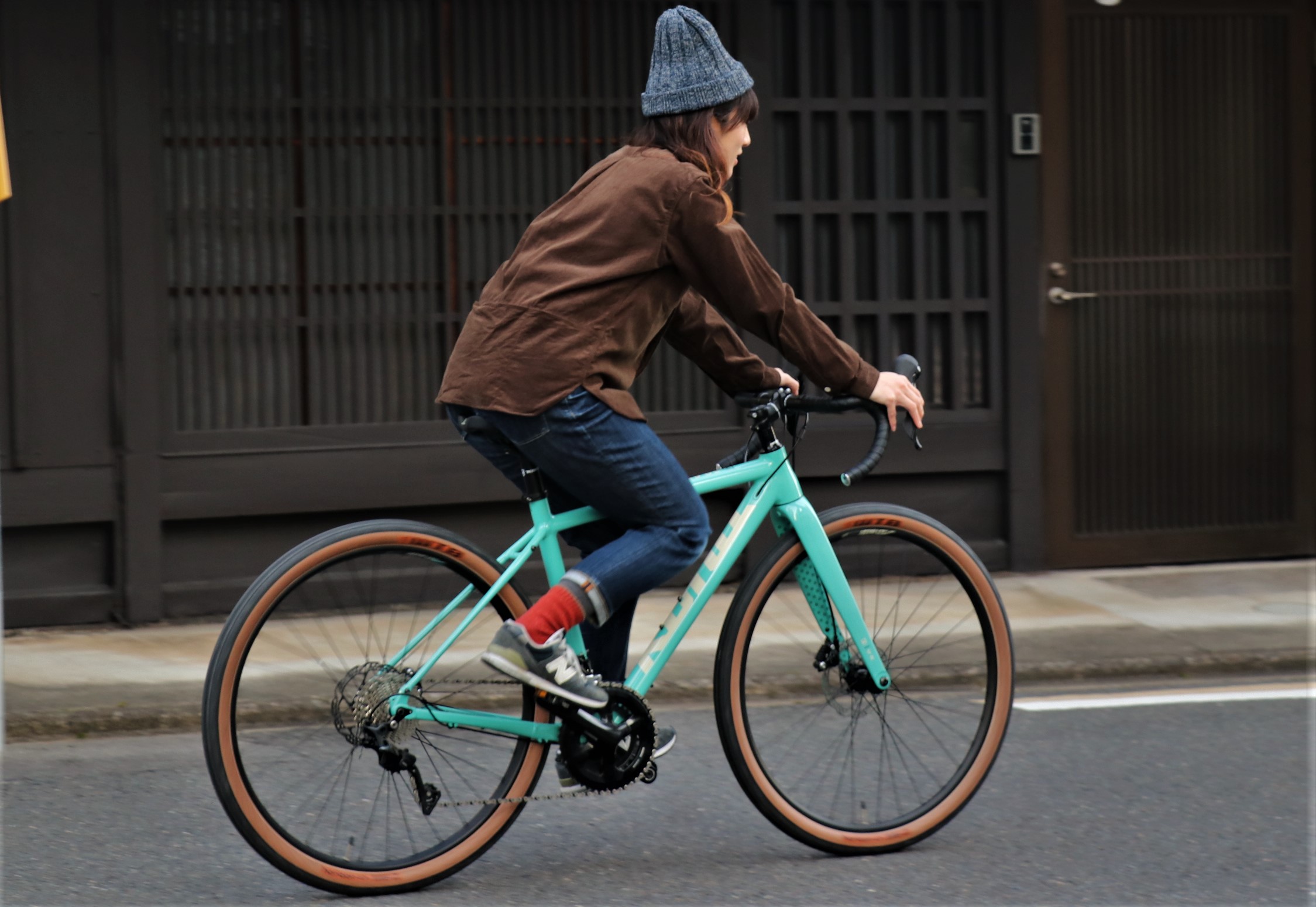ドロップハンドルに太目のタイヤ、あたかも往年のツーリングバイク”ランドナー”のような佇まいに加え、