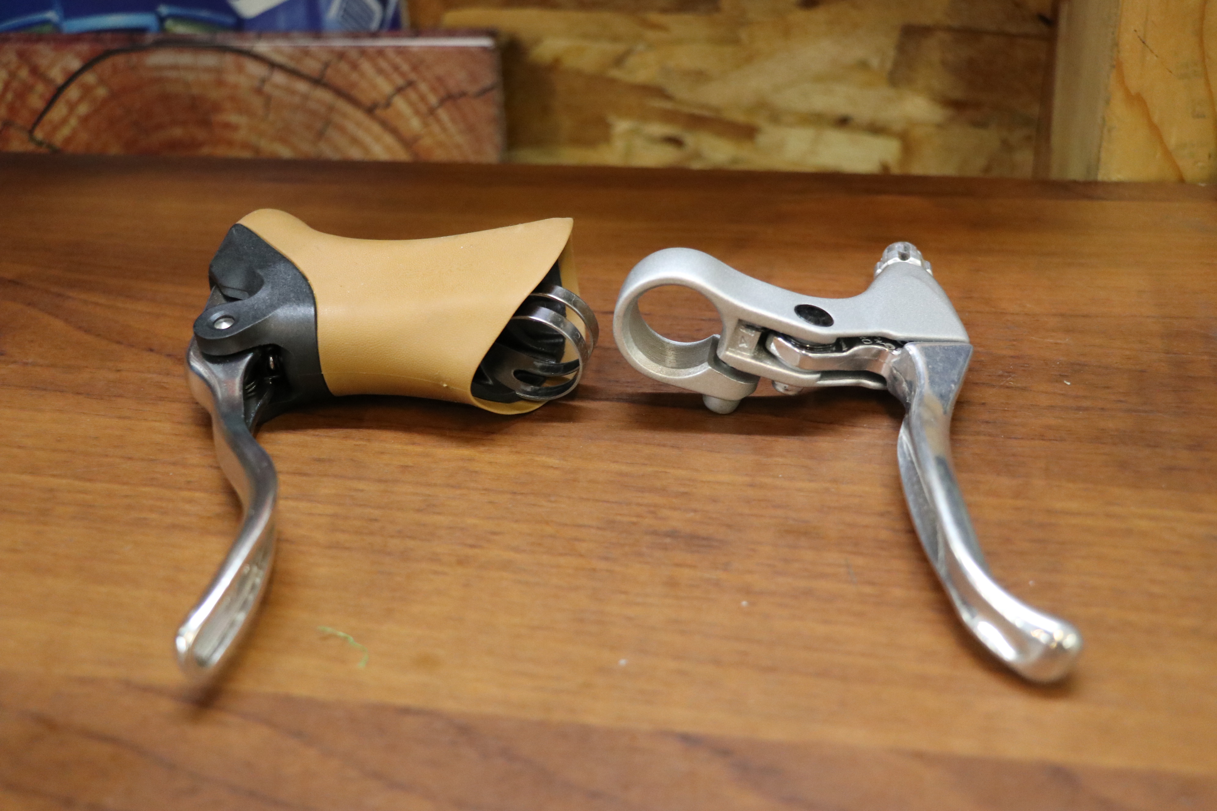 ドロップハンドルに使用するブレーキレバー(*画像右)と、クロスバイクやMTBに使用されるブレーキレバー(*画像左)とでは、