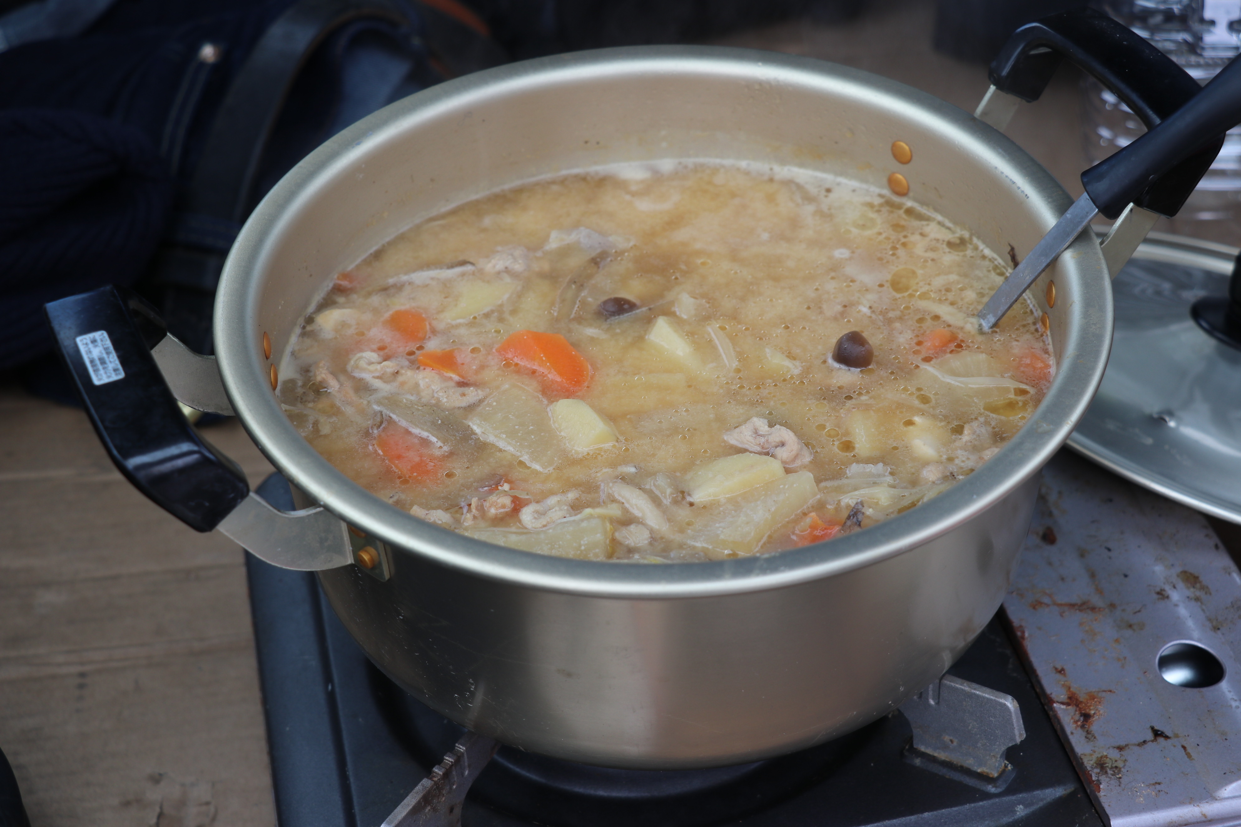 そしてC4のレース終了後はみんなで集まって、昨晩店長 @hatenanbu が夜なべして下ごしらえをしてくれた豚汁タイム!!