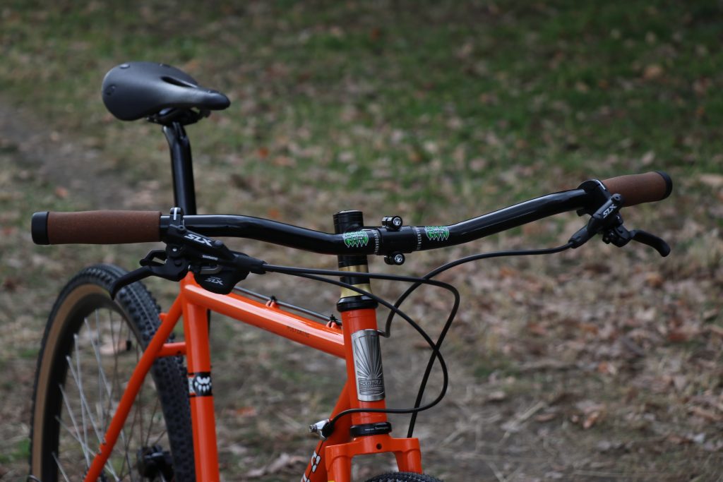 今回は街乗りにはやはり便利であり、かつ林道やちょっとしたトレイルの下りに優先順位をとり”フラットバー”を採用しました。