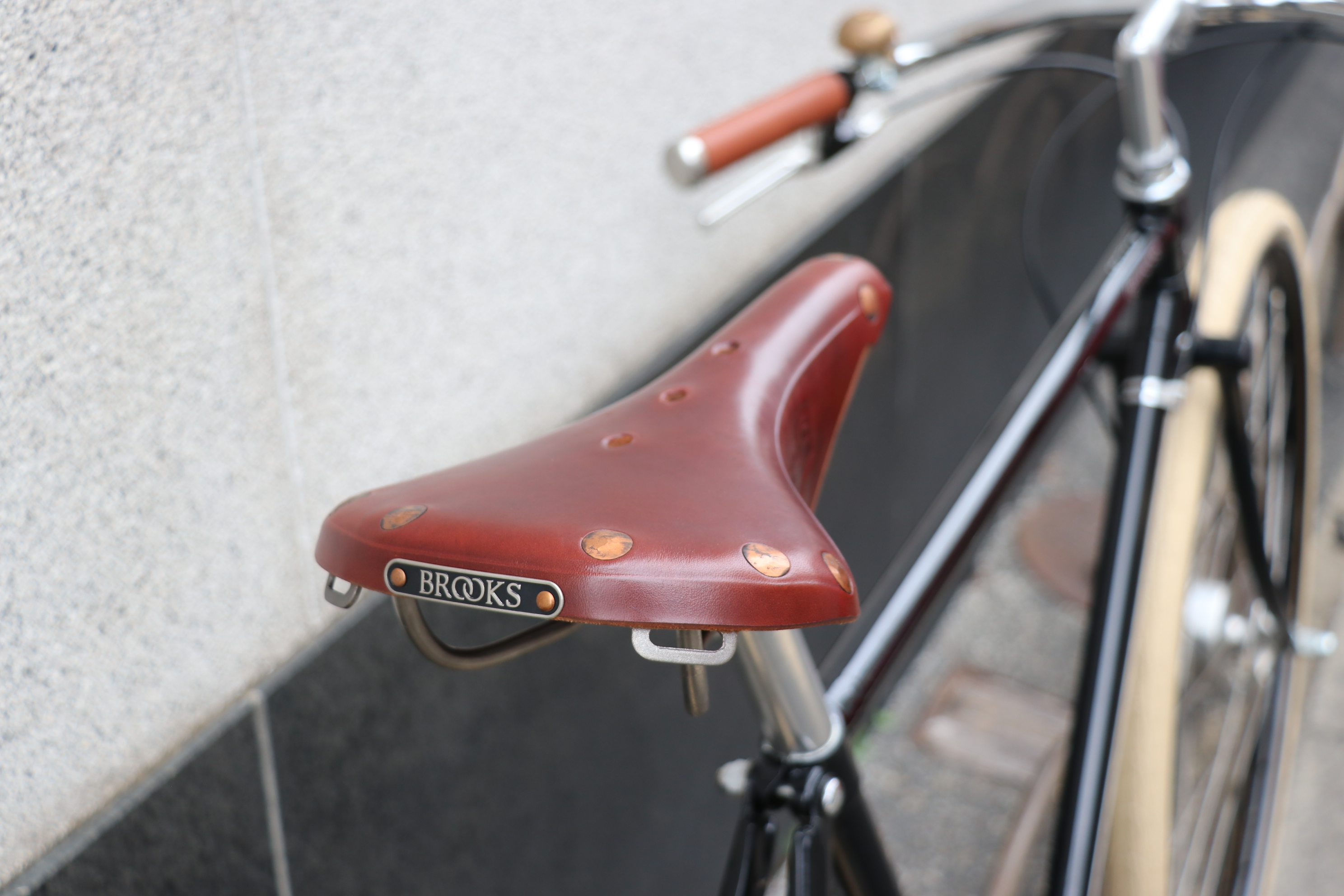 サドルはもちろん、同じくイギリス発ブランド「BROOKS」のB17 をアッセンブル。