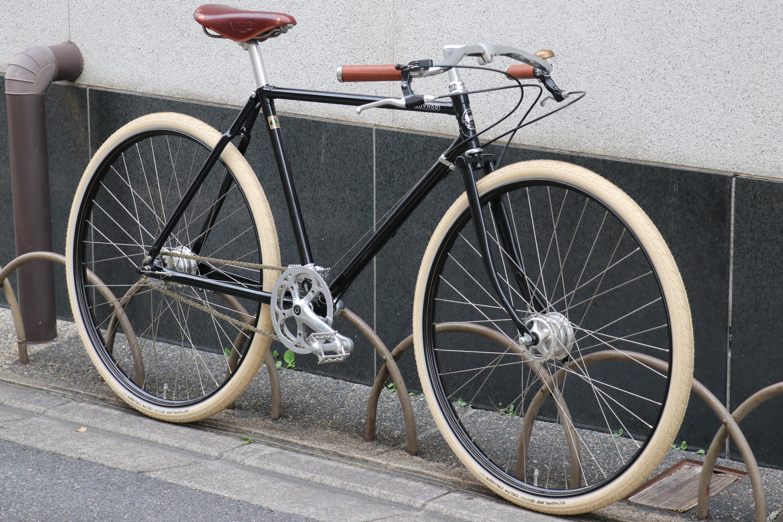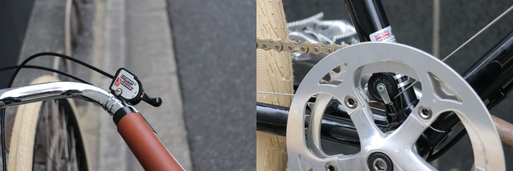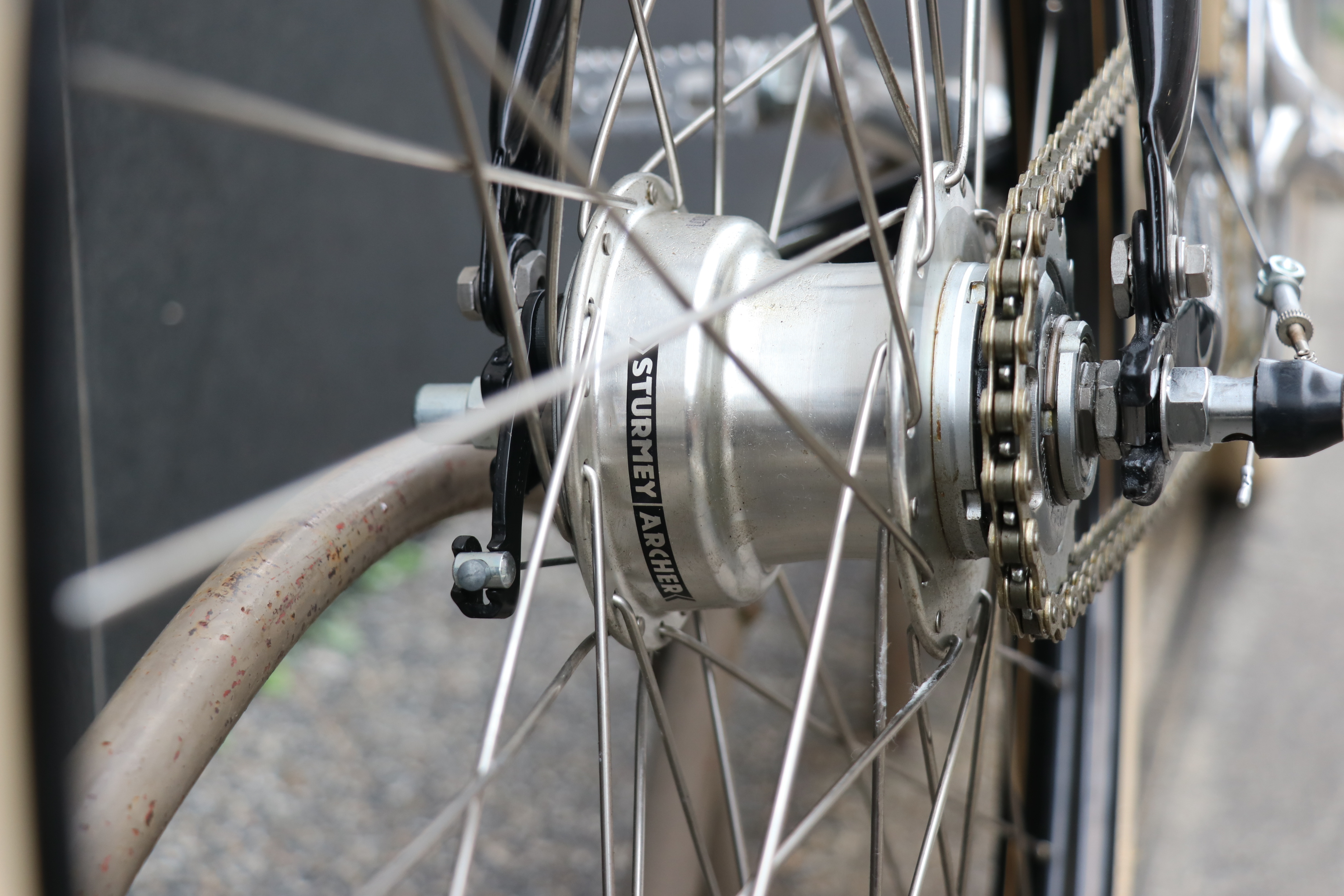 本モデルは内装3段変速仕様モデル。変速ギアシステムは内装ギアで定評ある同じく英国ブランド「Sturmey Archer」が使用されます。